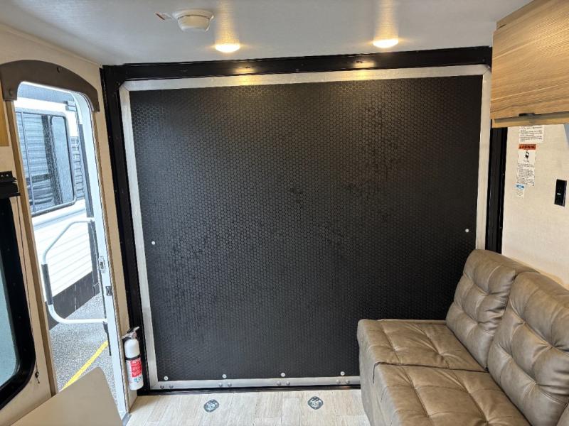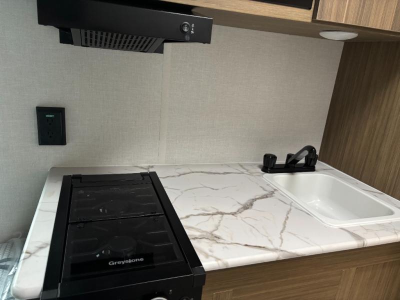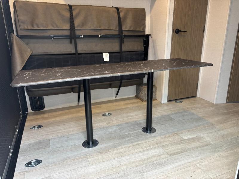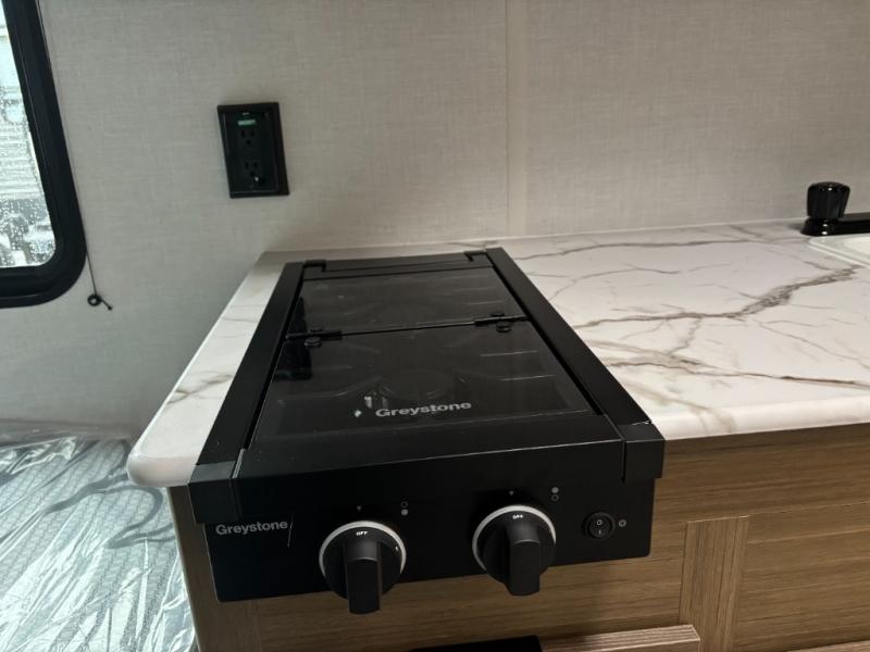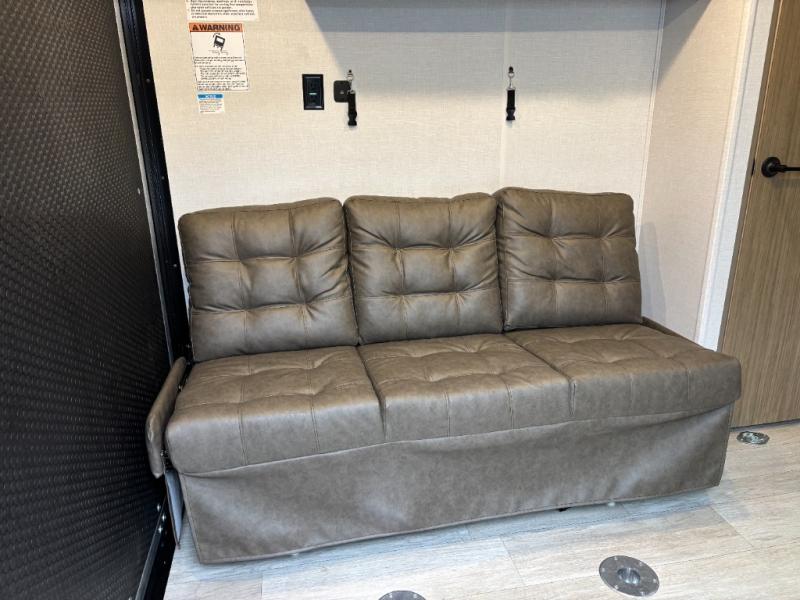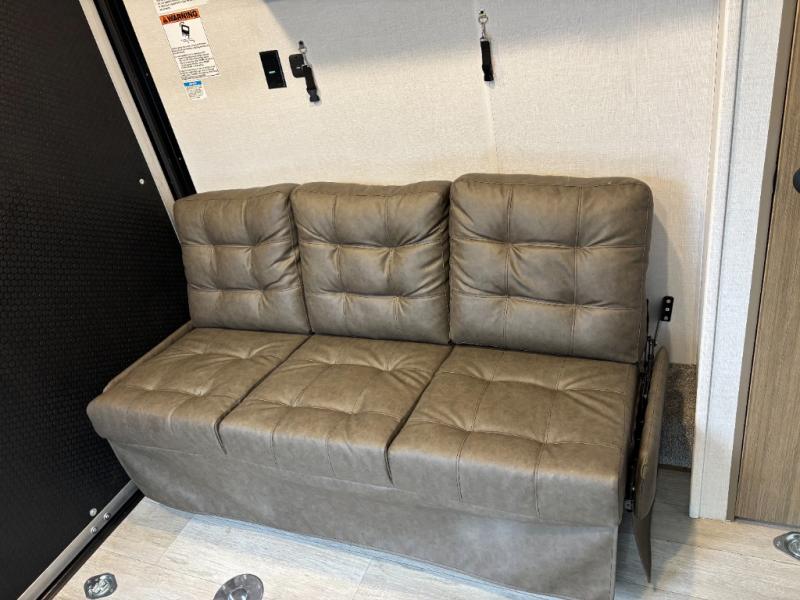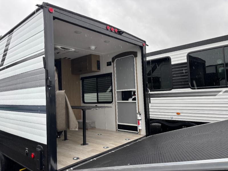 Take your favorite off-road toys with you in this toy hauler! Get a good night's rest on the front queen bed with an end table for a glass of water or a book. You can prepare delicious home cooked meals with the two burner cooktop, enjoy your meals at the flip-out sofa with table, and keep any snacks or other necessities in the pantry/closet. The 82" x 75" ramp door makes it easy to load an unload your toys, and after a fun day of trail riding you can freshen up in a hot shower. You even have a 12' awning to sit underneath and admire your beautiful surroundings!