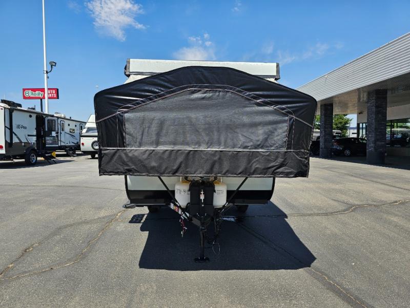 You'll be pleasantly surprised by the amount of comfort in these Flagstaff MAC Series folding pop-up campers by Forest River. Each one is built with a fiberglass laminated roof for added durability and a power roof lift for easy set up. There is also a clay exterior with an alloy band, solar panel prep on the frame, and four stabilizer jacks with sand pads to keep your camper secure. The interior features wood plank flooring, heated mattresses on the bunk ends, USB charging ports, and stylish Andover Sable wood.