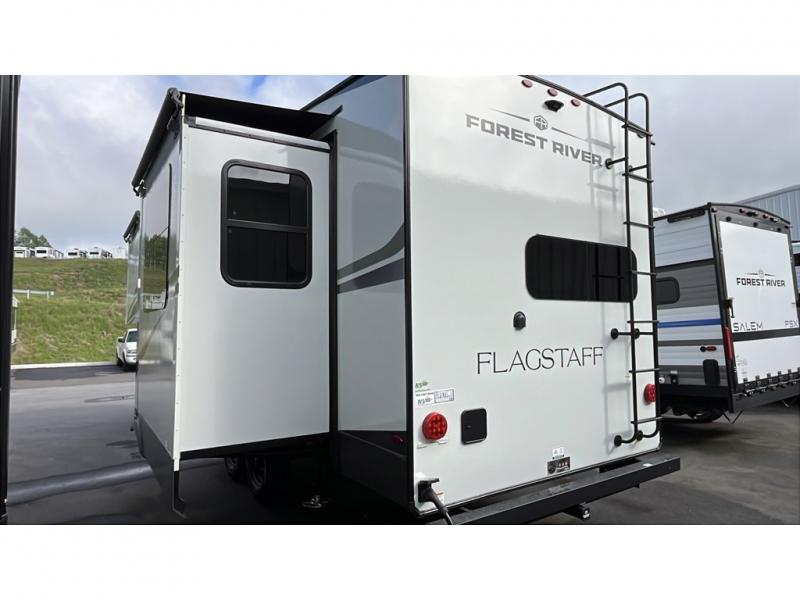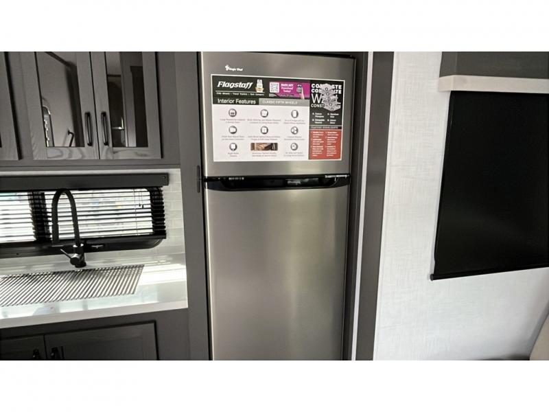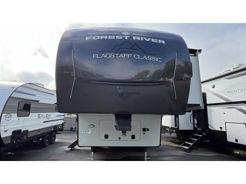 Each one of these Forest River Flagstaff Classic fifth wheels or travel trailers will be your home on wheels! Their quality craftsmanship and attention to detail shines through the surface-coated steel I-beam frame on fifth wheels, the enclosed underbelly, the radius roof with vaulted interior ceilings, and six-sided fully aluminum-framed floor, walls, and roof. Towing your unit will be easy with the torsion axle, Rubber-Ryde suspension, and nitrogen-filled Goodyear Endurance tires. You will even reduce your use of water with the Showermiser water saving system in the bathroom. A few other convenient features you will enjoy include a control panel with WeRV app control, designer headboard and bedding, and an outside hot and cold water port. Come choose your favorite one today!