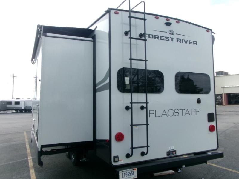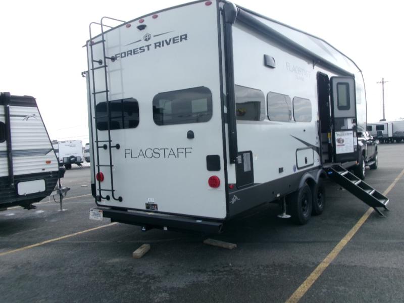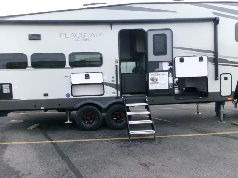Each one of these Forest River Flagstaff Classic fifth wheels or travel trailers will be your home on wheels! Their quality craftsmanship and attention to detail shines through the surface-coated steel I-beam frame on fifth wheels, the enclosed underbelly, the radius roof with vaulted interior ceilings, and six-sided fully aluminum-framed floor, walls, and roof. Towing your unit will be easy with the torsion axle, Rubber-Ryde suspension, and nitrogen-filled Goodyear Endurance tires. You will even reduce your use of water with the Showermiser water saving system in the bathroom. A few other convenient features you will enjoy include a control panel with WeRV app control, designer headboard and bedding, and an outside hot and cold water port. Come choose your favorite one today!