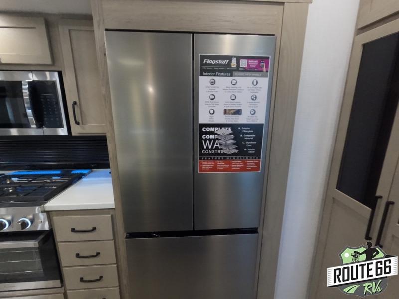 Each one of these Forest River Flagstaff Classic fifth wheels or travel trailers will be your home on wheels! Their quality craftsmanship and attention to detail shines through the surface-coated steel I-beam frame on fifth wheels, the enclosed underbelly, the radius roof with vaulted interior ceilings, and six-sided fully aluminum-framed floor, walls, and roof. Towing your unit will be easy with the torsion axle, Rubber-Ryde suspension, and nitrogen-filled Goodyear Endurance tires. You will even reduce your use of water with the Showermiser water saving system in the bathroom. A few other convenient features you will enjoy include a control panel with WeRV app control, designer headboard and bedding, and an outside hot and cold water port. Come choose your favorite one today!
