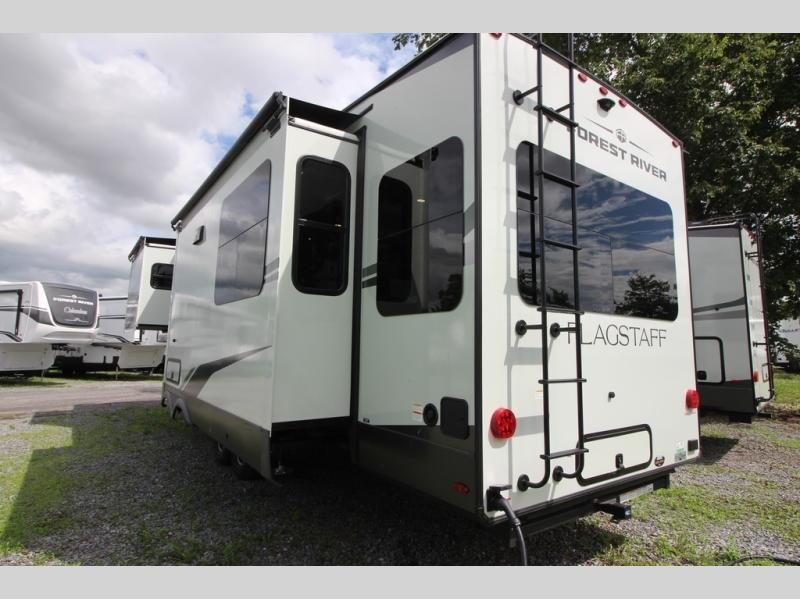 Each one of these Forest River Flagstaff Classic fifth wheels or travel trailers will be your home on wheels! Their quality craftsmanship and attention to detail shines through the surface-coated steel I-beam frame on fifth wheels, the enclosed underbelly, the radius roof with vaulted interior ceilings, and six-sided fully aluminum-framed floor, walls, and roof. Towing your unit will be easy with the torsion axle, Rubber-Ryde suspension, and nitrogen-filled Goodyear Endurance tires. You will even reduce your use of water with the Showermiser water saving system in the bathroom. A few other convenient features you will enjoy include a control panel with WeRV app control, designer headboard and bedding, and an outside hot and cold water port. Come choose your favorite one today!