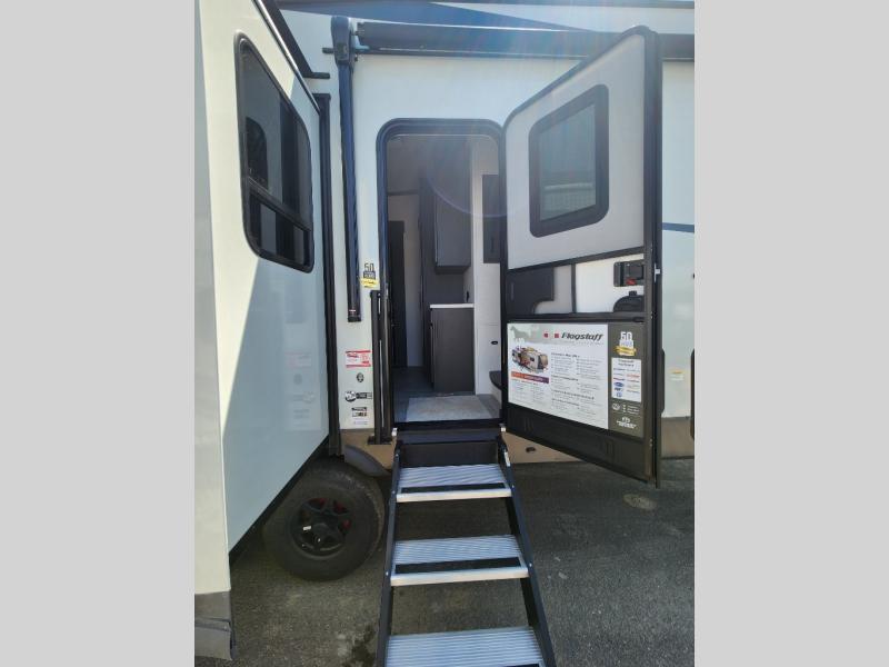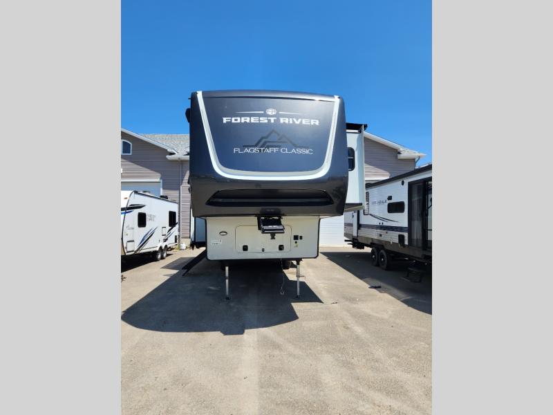 Each one of these Forest River Flagstaff Classic fifth wheels or travel trailers will be your home on wheels! Their quality craftsmanship and attention to detail shines through the surface-coated steel I-beam frame on fifth wheels, the enclosed underbelly, the radius roof with vaulted interior ceilings, and six-sided fully aluminum-framed floor, walls, and roof. Towing your unit will be easy with the torsion axle, Rubber-Ryde suspension, and nitrogen-filled Goodyear Endurance tires. You will even reduce your use of water with the Showermiser water saving system in the bathroom. A few other convenient features you will enjoy include a control panel with WeRV app control, designer headboard and bedding, and an outside hot and cold water port. Come choose your favorite one today!