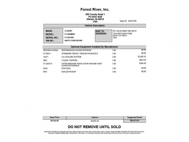 New 2025 Forest River RV Flagstaff Classic 826MBR Travel Trailer
