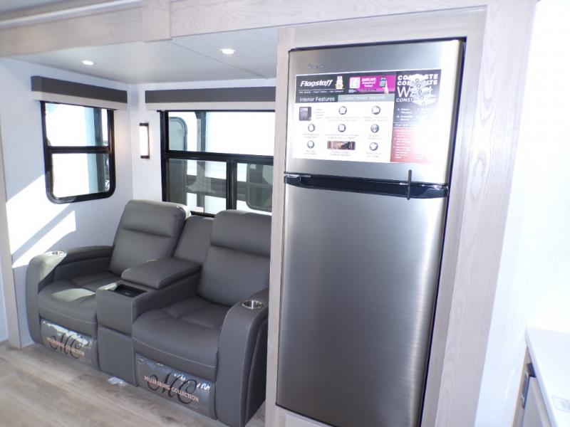 Each one of these Forest River Flagstaff Classic fifth wheels or travel trailers will be your home on wheels! Their quality craftsmanship and attention to detail shines through the surface-coated steel I-beam frame on fifth wheels, the enclosed underbelly, the radius roof with vaulted interior ceilings, and six-sided fully aluminum-framed floor, walls, and roof. Towing your unit will be easy with the torsion axle, Rubber-Ryde suspension, and nitrogen-filled Goodyear Endurance tires. You will even reduce your use of water with the Showermiser water saving system in the bathroom. A few other convenient features you will enjoy include a control panel with WeRV app control, a designer headboard and bedding, and an outside shower with hot and cold water. Come choose your favorite one today!