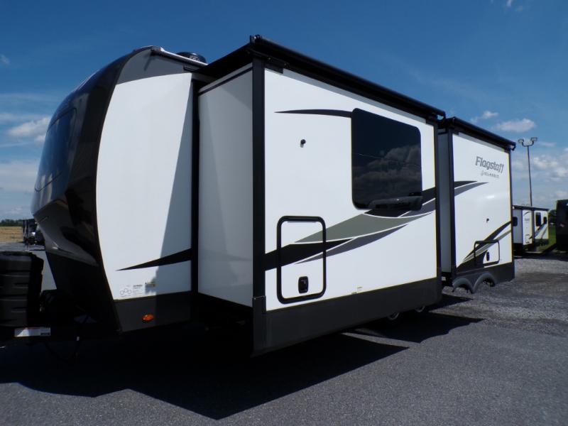 Each one of these Forest River Flagstaff Classic fifth wheels or travel trailers will be your home on wheels! Their quality craftsmanship and attention to detail shines through the surface-coated steel I-beam frame on fifth wheels, the enclosed underbelly, the radius roof with vaulted interior ceilings, and six-sided fully aluminum-framed floor, walls, and roof. Towing your unit will be easy with the torsion axle, Rubber-Ryde suspension, and nitrogen-filled Goodyear Endurance tires. You will even reduce your use of water with the Showermiser water saving system in the bathroom. A few other convenient features you will enjoy include a control panel with WeRV app control, a designer headboard and bedding, and an outside shower with hot and cold water. Come choose your favorite one today!