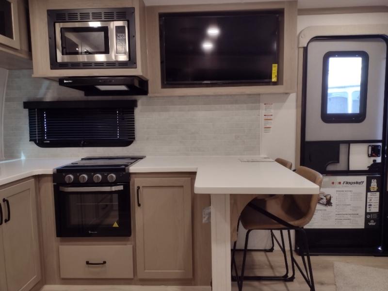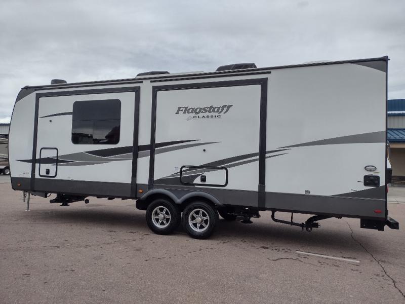 Each one of these Forest River Flagstaff Classic fifth wheels or travel trailers will be your home on wheels! Their quality craftsmanship and attention to detail shines through the enclosed underbelly, the radius roof with vaulted interior ceilings, and six-sided fully aluminum-framed floor, walls, and roof. Towing your unit will be easy with the Goodyear Endurance tires plus a tire pressure monitoring system with a monitor. The interior of each Flagstaff Classic model will have you feeling right at home with Sedonwood cabinetry, soft closing drawer slides, reading lights in the bedroom, plus many more comforts.