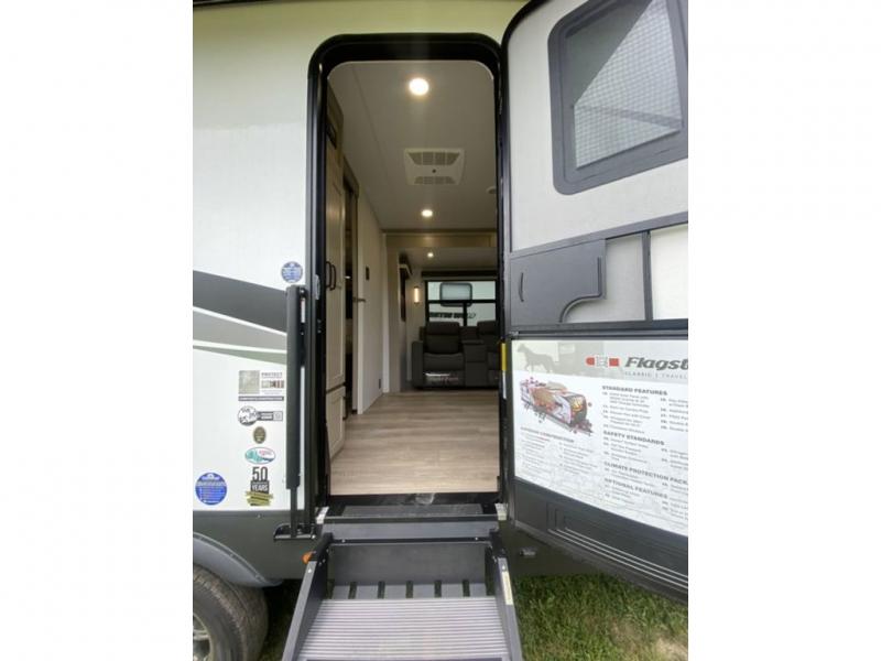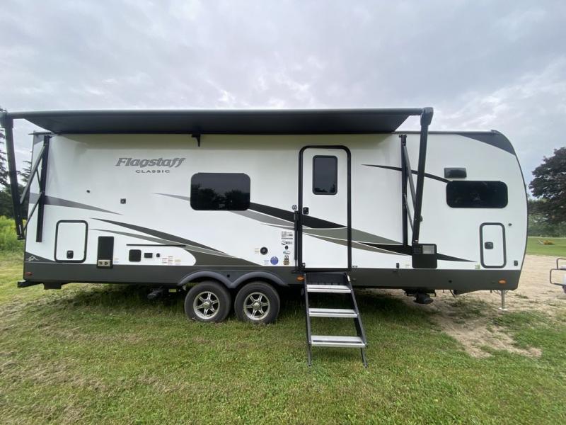 Each one of these Forest River Flagstaff Classic fifth wheels or travel trailers will be your home on wheels! Their quality craftsmanship and attention to detail shines through the enclosed underbelly, the radius roof with vaulted interior ceilings, and six-sided fully aluminum-framed floor, walls, and roof. Towing your unit will be easy with the Goodyear Endurance tires plus a tire pressure monitoring system with a monitor. The interior of each Flagstaff Classic model will have you feeling right at home with Sedonwood cabinetry, soft closing drawer slides, reading lights in the bedroom, plus many more comforts.