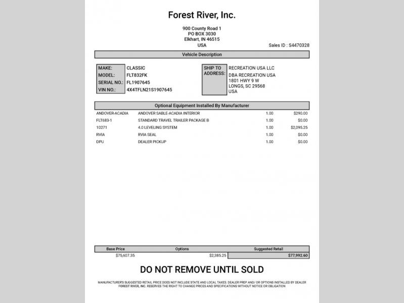 New 2025 Forest River Flagstaff Classic 832FK Travel Trailer