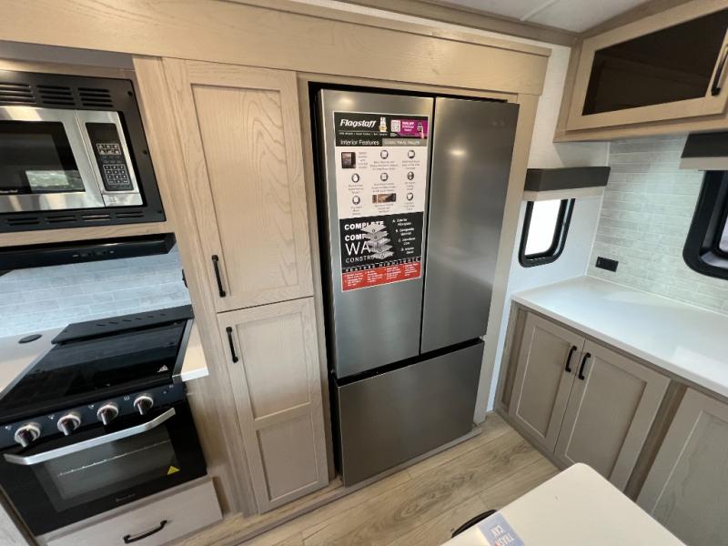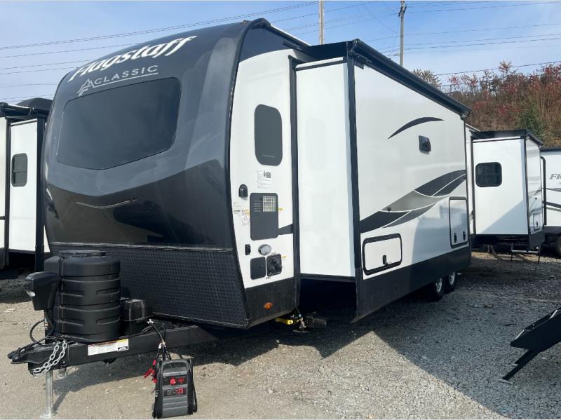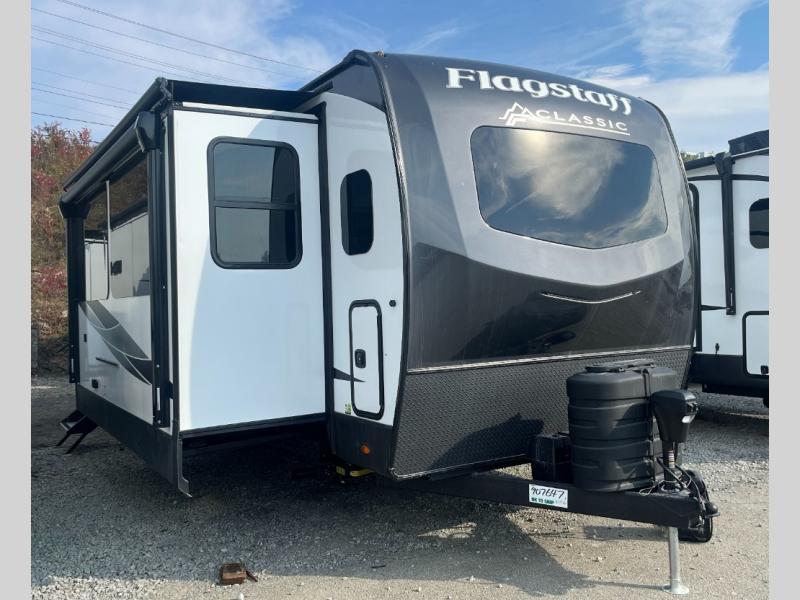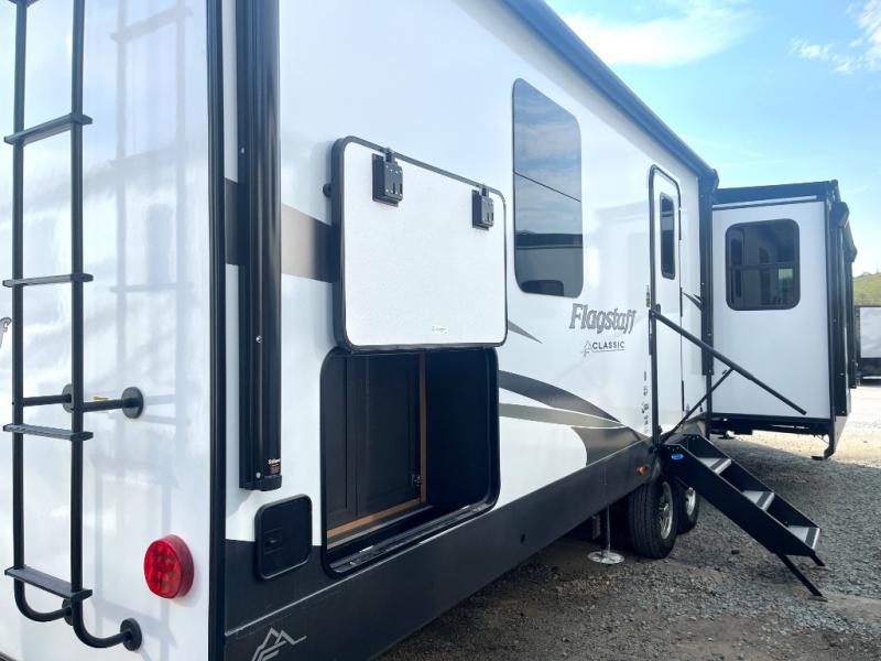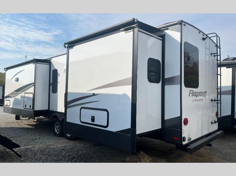 Each one of these Forest River Flagstaff Classic fifth wheels or travel trailers will be your home on wheels! Their quality craftsmanship and attention to detail shines through the enclosed underbelly, the radius roof with vaulted interior ceilings, and six-sided fully aluminum-framed floor, walls, and roof. Towing your unit will be easy with the Goodyear Endurance tires plus a tire pressure monitoring system with a monitor. The interior of each Flagstaff Classic model will have you feeling right at home with Sedonwood cabinetry, soft closing drawer slides, reading lights in the bedroom, plus many more comforts.
