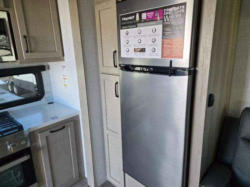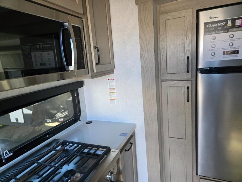 Each one of these Forest River Flagstaff Classic fifth wheels or travel trailers will be your home on wheels! Their quality craftsmanship and attention to detail shines through the enclosed underbelly, the radius roof with vaulted interior ceilings, and six-sided fully aluminum-framed floor, walls, and roof. Towing your unit will be easy with the Goodyear Endurance tires plus a tire pressure monitoring system with a monitor. The interior of each Flagstaff Classic model will have you feeling right at home with Sedonwood cabinetry, soft closing drawer slides, reading lights in the bedroom, plus many more comforts.