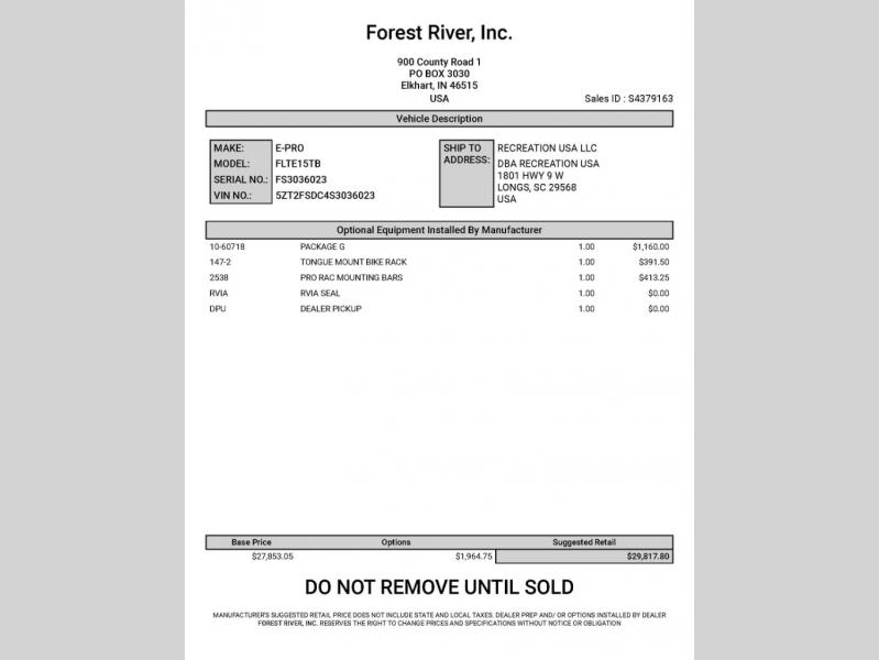 New 2025 Forest River Flagstaff E-Pro travel trailer E15TB highlights: