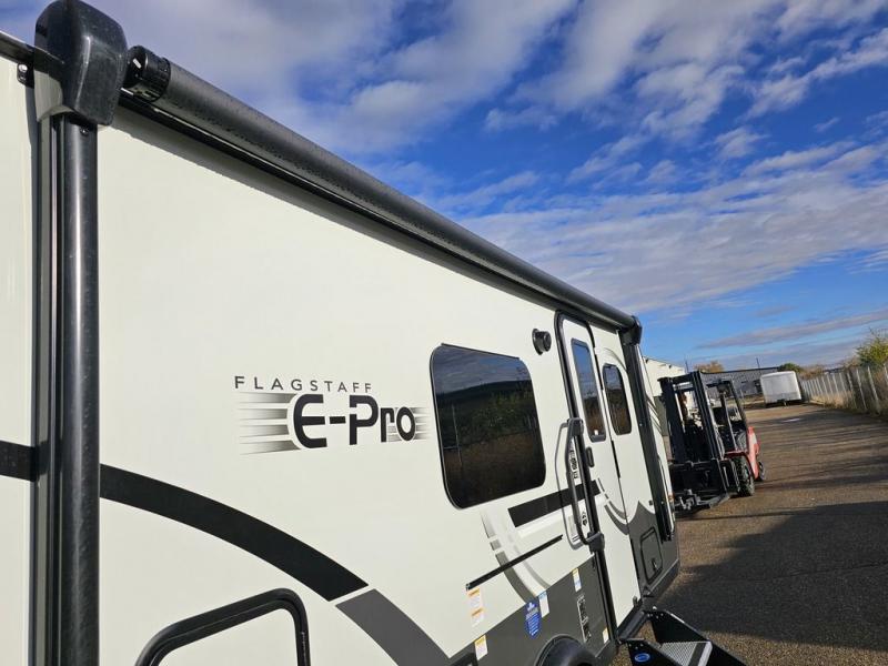 With any Flagstaff E-Pro travel trailer by Forest River, you will experience lightweight towing, style and features that will meet your needs, plus amenities that give you more than you expected! Built with interior and exterior composite sidewall construction, tongue and grove plywood flooring, and a vacuum laminated roof and walls, plus torsion axle, Rubber-Ryde suspension, and a tire pressure monitoring system for safety while traveling. And the 200 watt roof mount solar panel with 1,800-watt inverter will allow you to stay off-grid if you like. The interior offers a comfortable environment with the choice to use the air conditioner or furnace, and a 12V entertainment TV with a stereo to stay up to date on your favorite movies. Make your selection today!