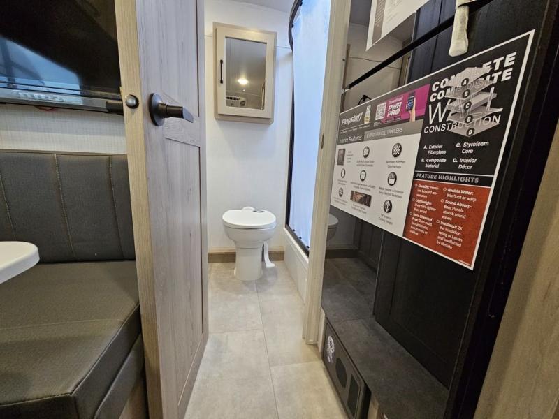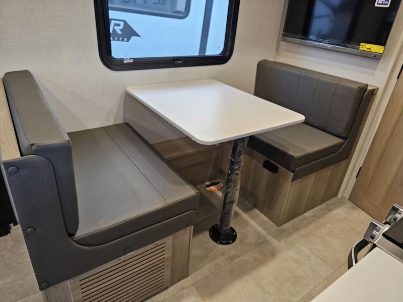 Whether you enjoy staying at the campground for a weekend or longer and/or you enjoy off-grid camping, this 20' 2" long trailer gives you lots of interior space and versatility to enjoy each and every trip. From the Murphy bed/sofa combo up front offering sleeping space and seating depending on which you prefer at the time, to the full rear bathroom which also offers overhead storage, you will have everything you need. And the kitchen cooktop, microwave and 12V refrigerator allow you to make meals and store leftovers. Two can dine at the booth dinette or you can eat outdoors under the 14' power awning.