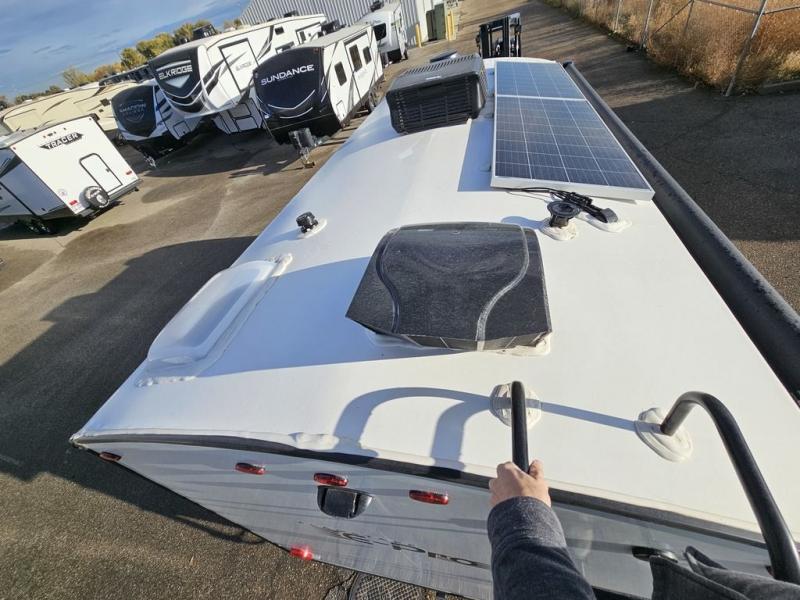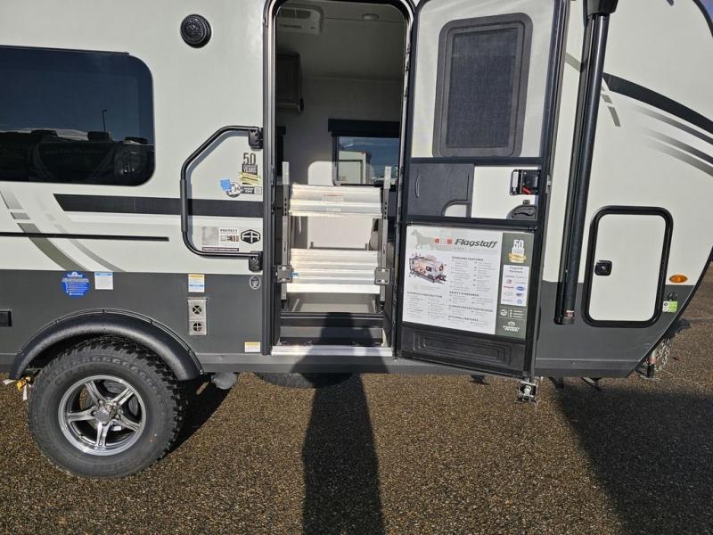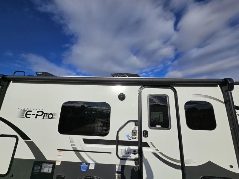 With any Flagstaff E-Pro travel trailer by Forest River, you will experience lightweight towing, style and features that will meet your needs, plus amenities that give you more than you expected! Built with interior and exterior composite sidewall construction, tongue and grove plywood flooring, and a vacuum laminated roof and walls, plus torsion axle, Rubber-Ryde suspension, and a tire pressure monitoring system for safety while traveling. And the 200 watt roof mount solar panel with 1,800-watt inverter will allow you to stay off-grid if you like. The interior offers a comfortable environment with the choice to use the air conditioner or furnace, and a 12V entertainment TV with a stereo to stay up to date on your favorite movies. Make your selection today!