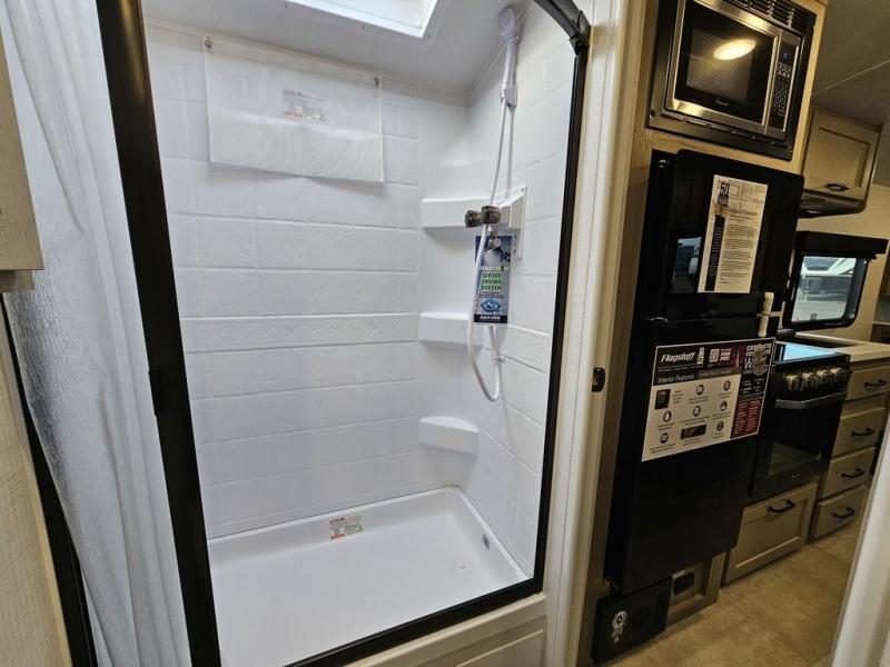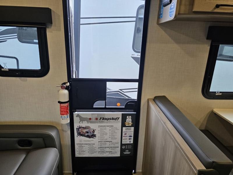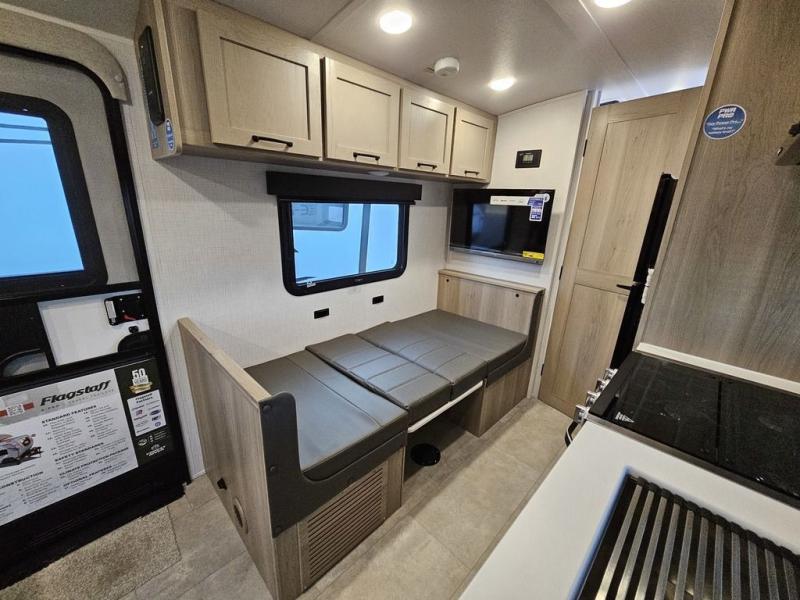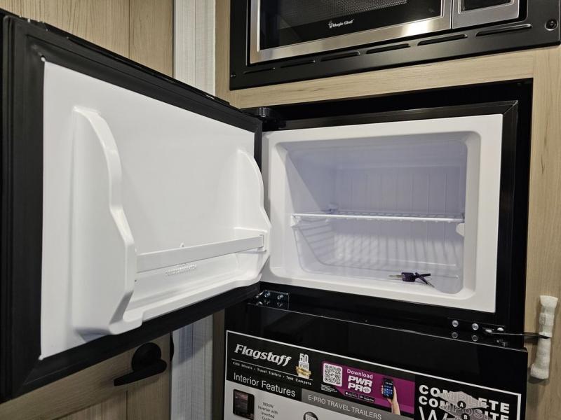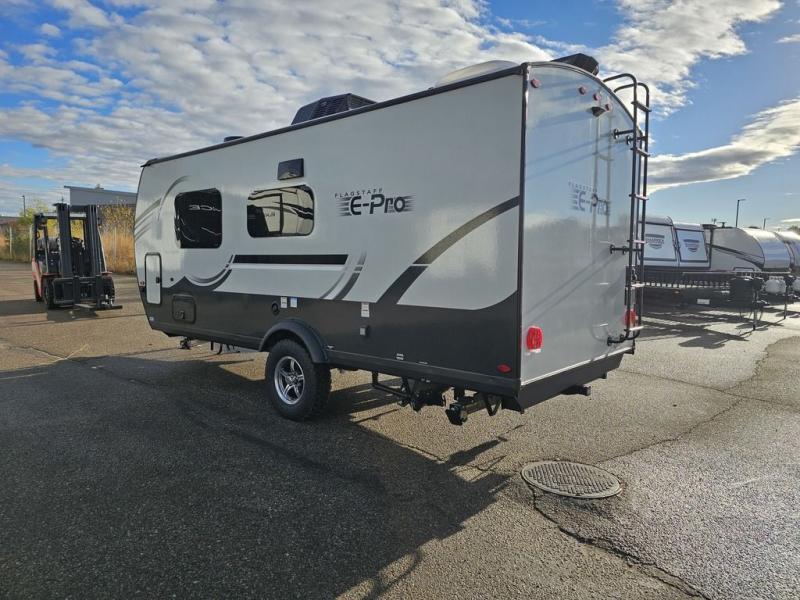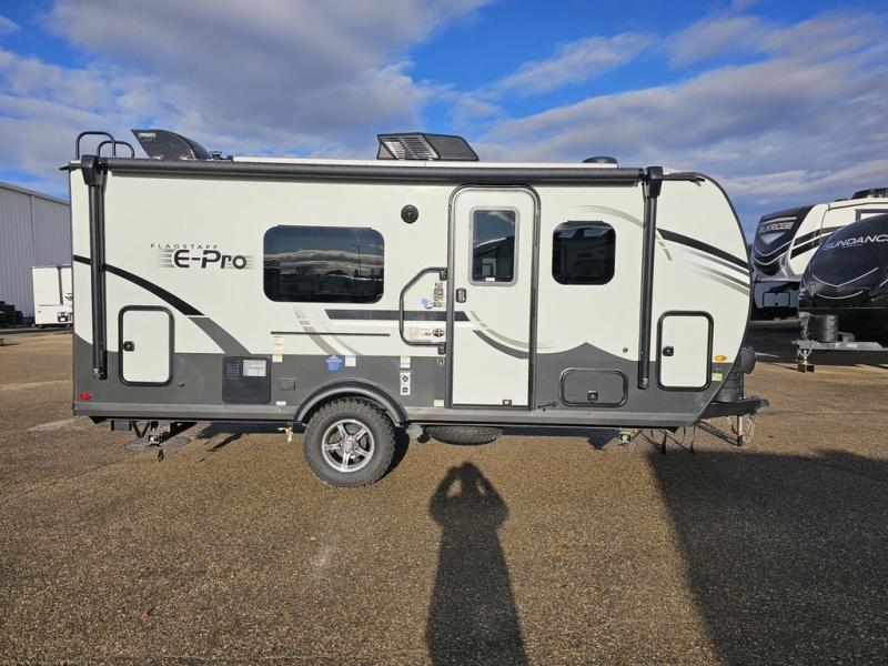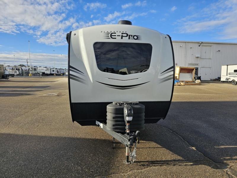 With any Flagstaff E-Pro travel trailer by Forest River, you will experience lightweight towing, style and features that will meet your needs, plus amenities that give you more than you expected! Built with interior and exterior composite sidewall construction, tongue and grove plywood flooring, and a vacuum laminated roof and walls, plus torsion axle, Rubber-Ryde suspension, and a tire pressure monitoring system for safety while traveling. And the 200 watt roof mount solar panel with 1,800-watt inverter will allow you to stay off-grid if you like. The interior offers a comfortable environment with the choice to use the air conditioner or furnace, and a 12V entertainment TV with a stereo to stay up to date on your favorite movies. Make your selection today!