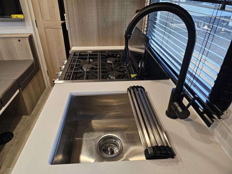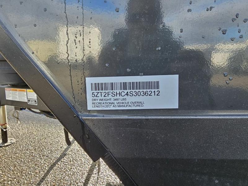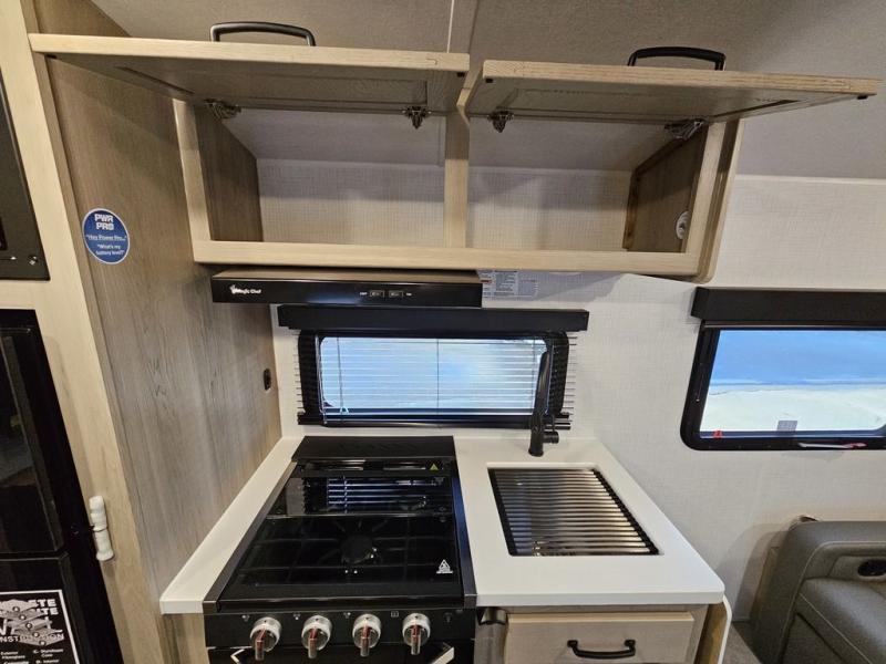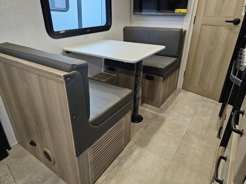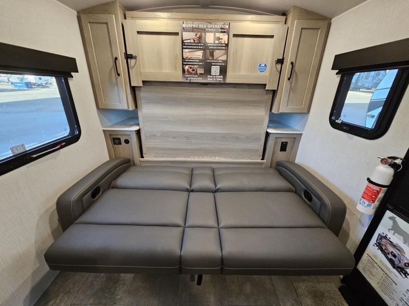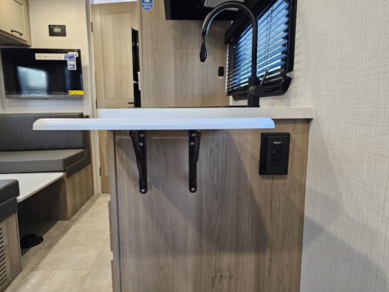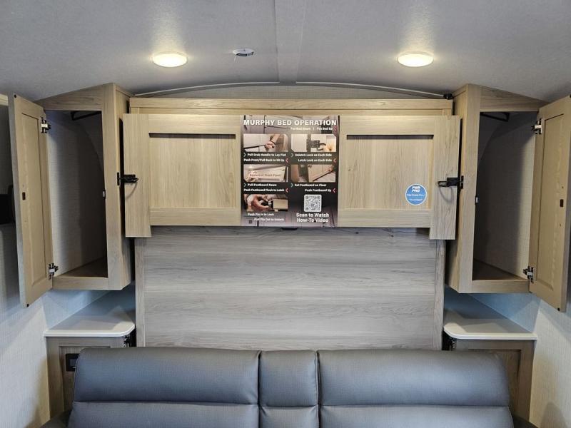 Whether you enjoy staying at the campground for a weekend or longer and/or you enjoy off-grid camping, this 20' 2" long trailer gives you lots of interior space and versatility to enjoy each and every trip. From the Murphy bed/sofa combo up front offering sleeping space and seating depending on which you prefer at the time, to the full rear bathroom which also offers overhead storage, you will have everything you need. And the kitchen cooktop, microwave and 12V refrigerator allow you to make meals and store leftovers. Two can dine at the booth dinette or you can eat outdoors under the 14' power awning.