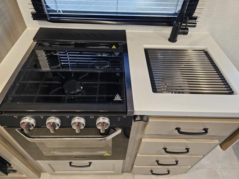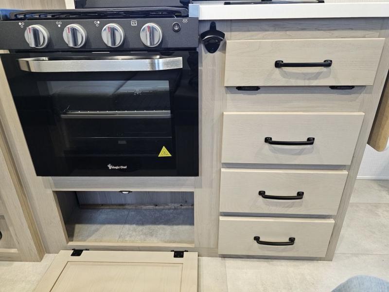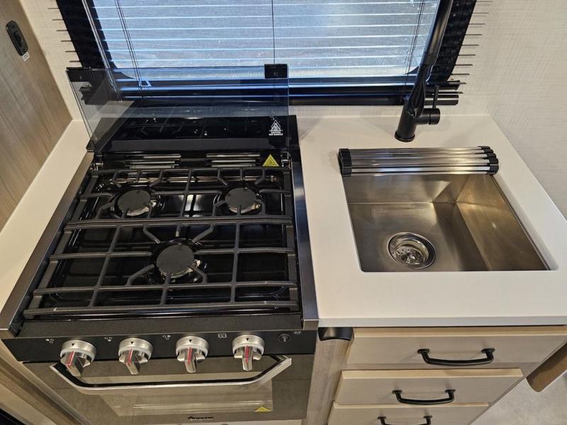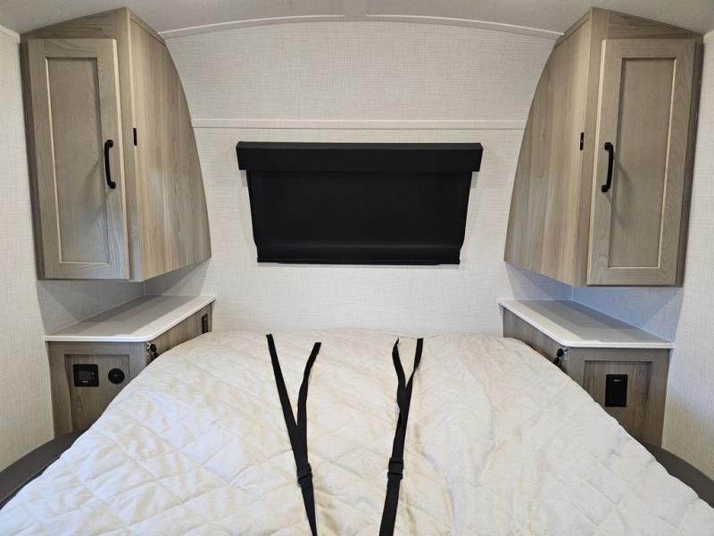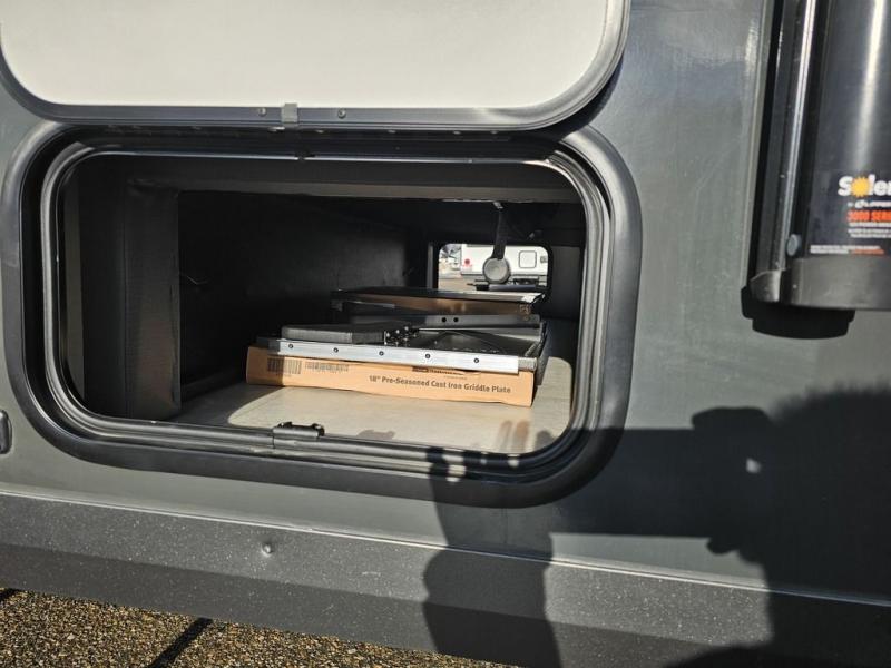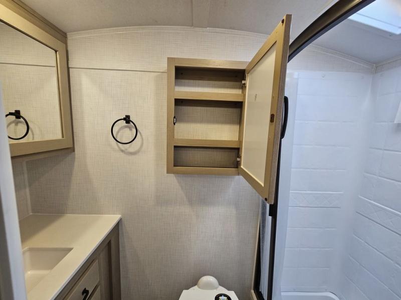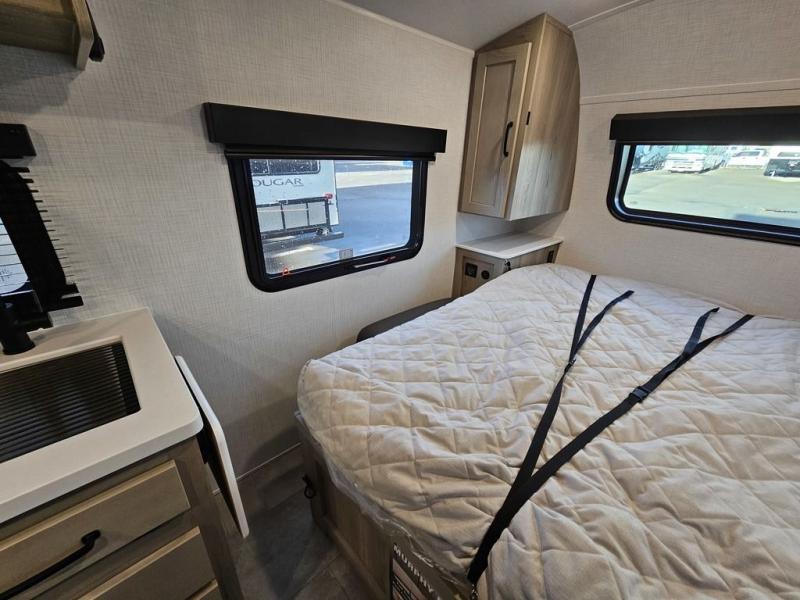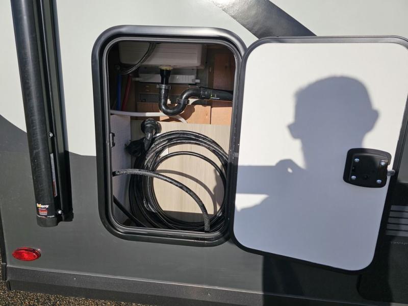 Whether you enjoy staying at the campground for a weekend or longer and/or you enjoy off-grid camping, this 20' 2" long trailer gives you lots of interior space and versatility to enjoy each and every trip. From the Murphy bed/sofa combo up front offering sleeping space and seating depending on which you prefer at the time, to the full rear bathroom which also offers overhead storage, you will have everything you need. And the kitchen cooktop, microwave and 12V refrigerator allow you to make meals and store leftovers. Two can dine at the booth dinette or you can eat outdoors under the 14' power awning.