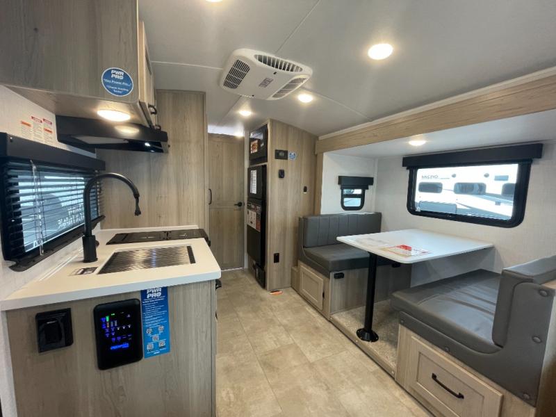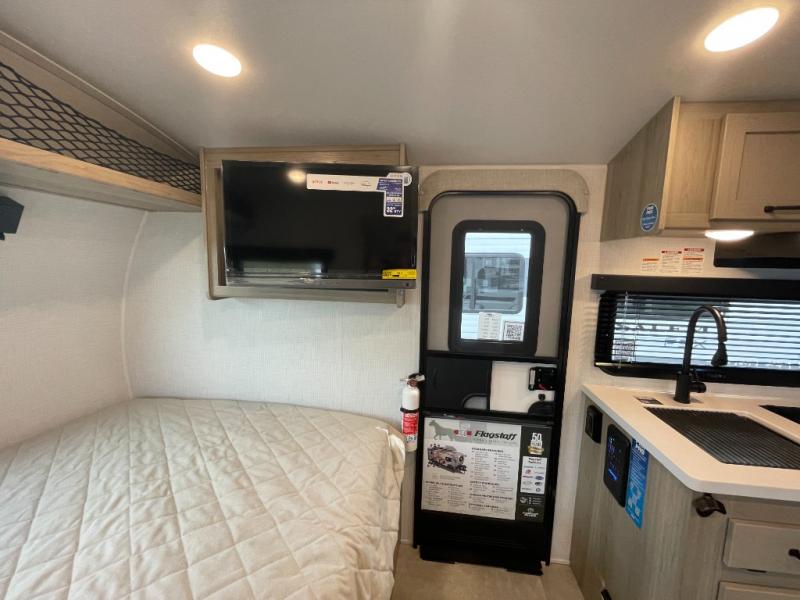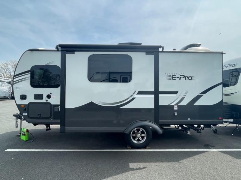 With any Flagstaff E-Pro travel trailer by Forest River, you will experience lightweight towing, style and features that will meet your needs, plus amenities that give you more than you expected! Built with interior and exterior composite sidewall construction, tongue and grove plywood flooring, and a vacuum laminated roof and walls, plus torsion axle, Rubber-Ryde suspension, and a tire pressure monitoring system for safety while traveling. And the 200 watt roof mount solar panel with 1,800-watt inverter will allow you to stay off-grid if you like. The interior offers a comfortable environment with the choice to use the air conditioner or furnace, and a 12V entertainment TV with a stereo to stay up to date on your favorite movies. Make your selection today!