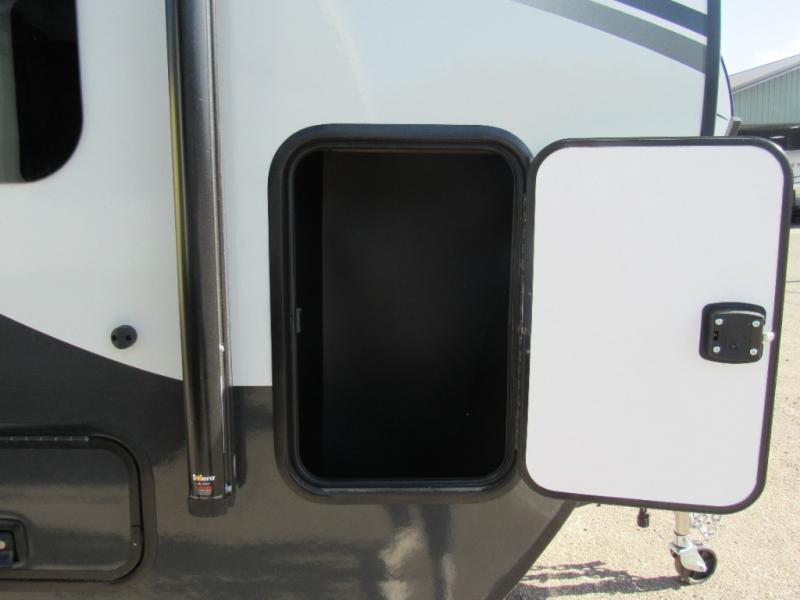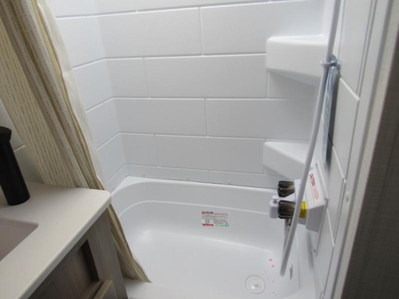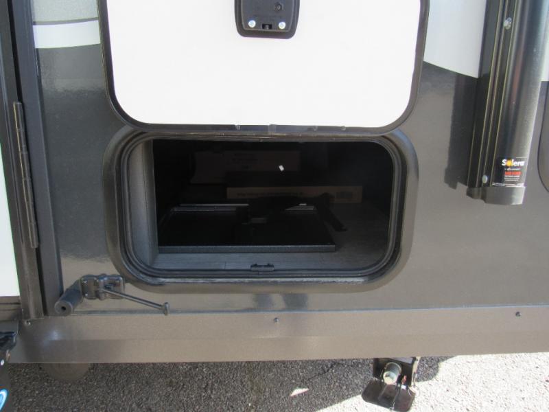You will love the versatile living in this travel trailer! The jackknife sofa has a 30" x 15" table to relax and enjoy your meals prepared with the recessed three burner cooktop or heat up some leftovers in the convection microwave. At night you can transform the sofa into a 54" x 74" Murphy bed while you watch your favorite movie on the 32" TV across from it. You can freshen up each morning in the rear corner bathroom with the shower which has a shower miser water saver feature to efficiently use your water. The 11' power awning will protect you rain or shine as you cook at the outdoor griddle, and there is plenty of storage between the front outside storage area and the additional pass-through storage area!