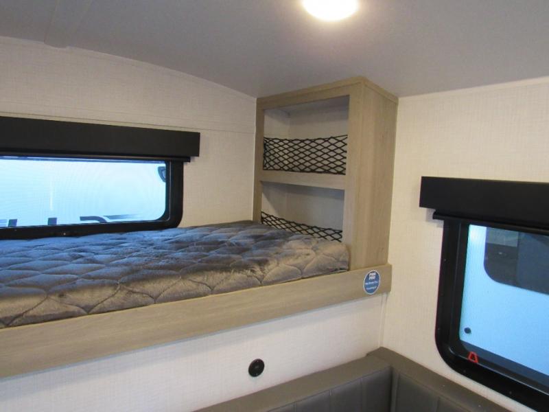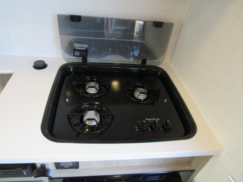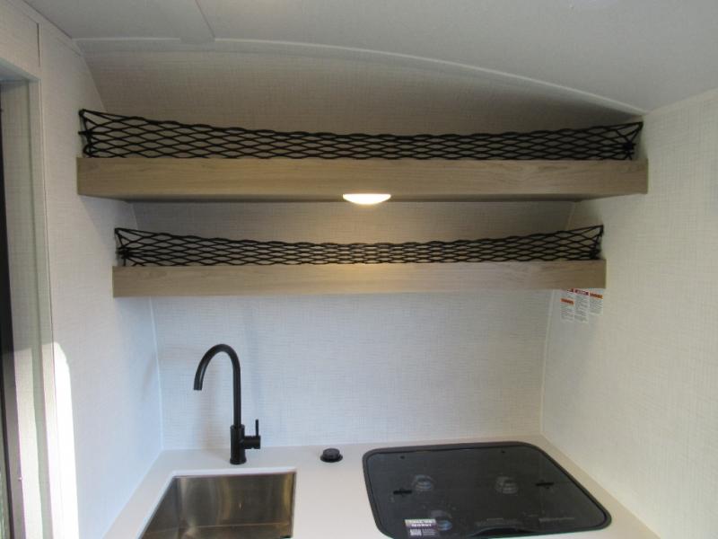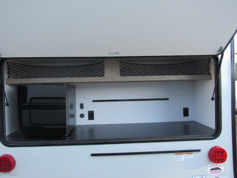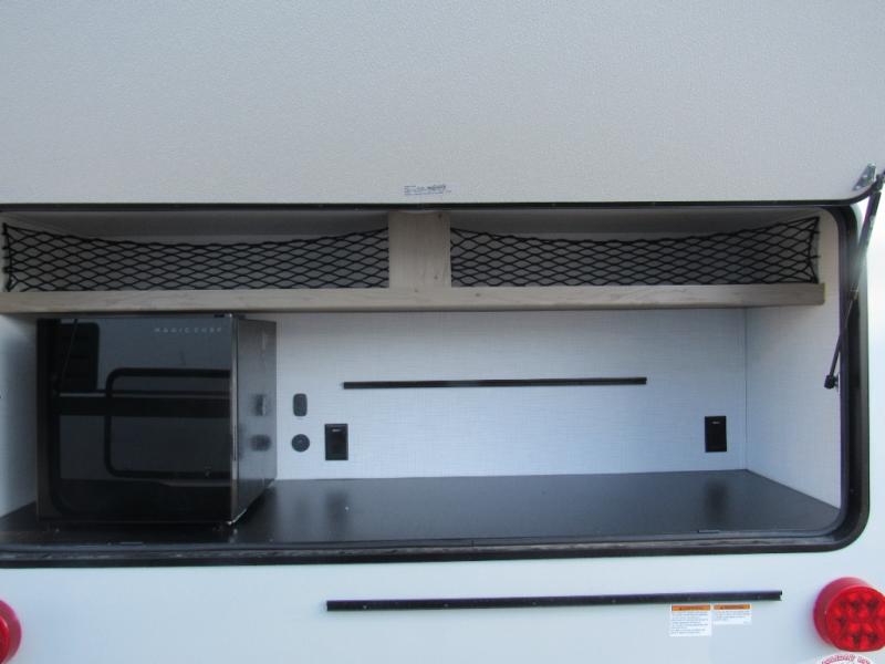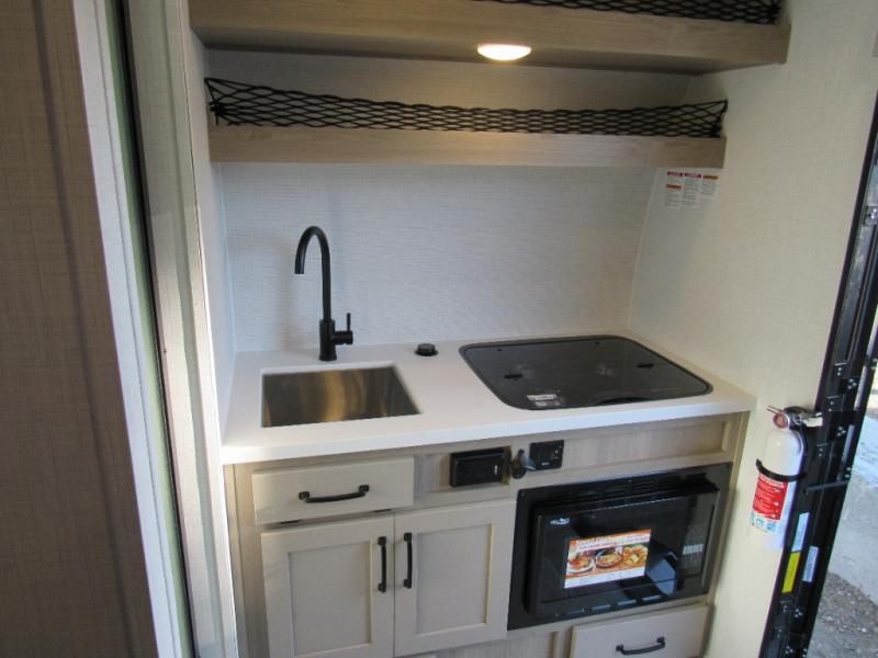 If you like to be on the go with your spouse or friend then this travel trailer is for you! The 26" x 74" bunk provides a comfortable place to sleep, as well as the 80" x 54" U-shaped dinette once converted. You even have a 32" TV nearby to watch your favorite movies. Freshen up in the wet bath each morning and warm up a cinnamon roll in the convection microwave or grab some eggs from the 12V refrigerator then fry them up on the recessed three burner cooktop. There is also an outside kitchen complete with a refrigerator and griddle, and the pass-thru storage will be perfect for fishing poles!