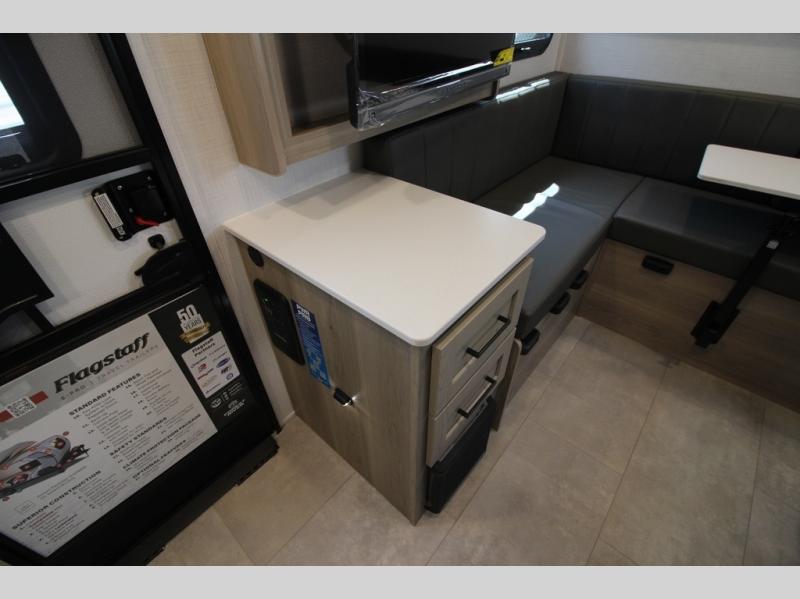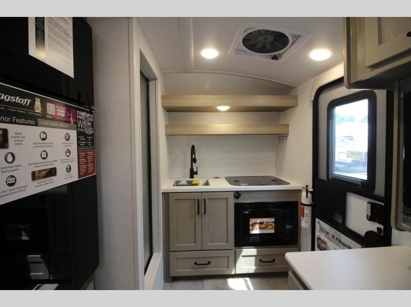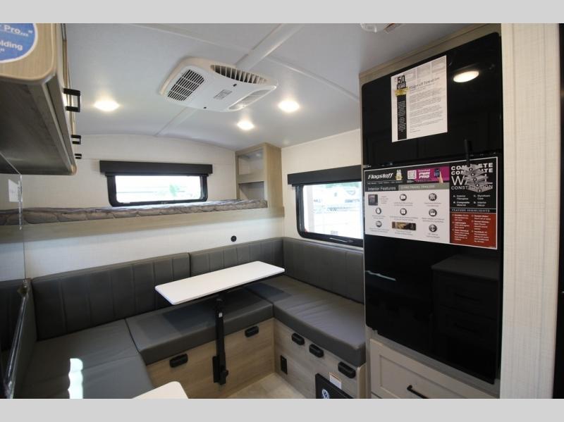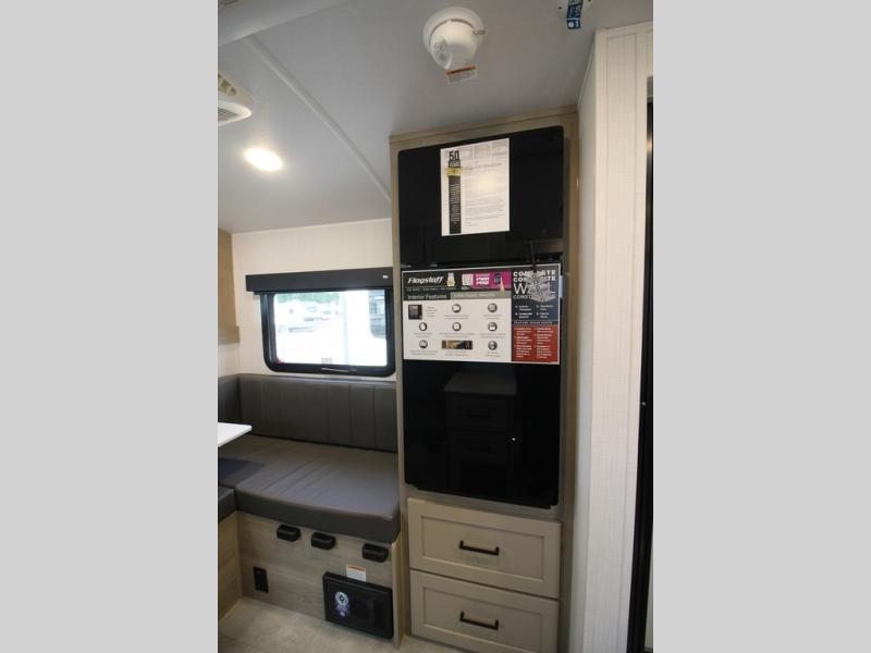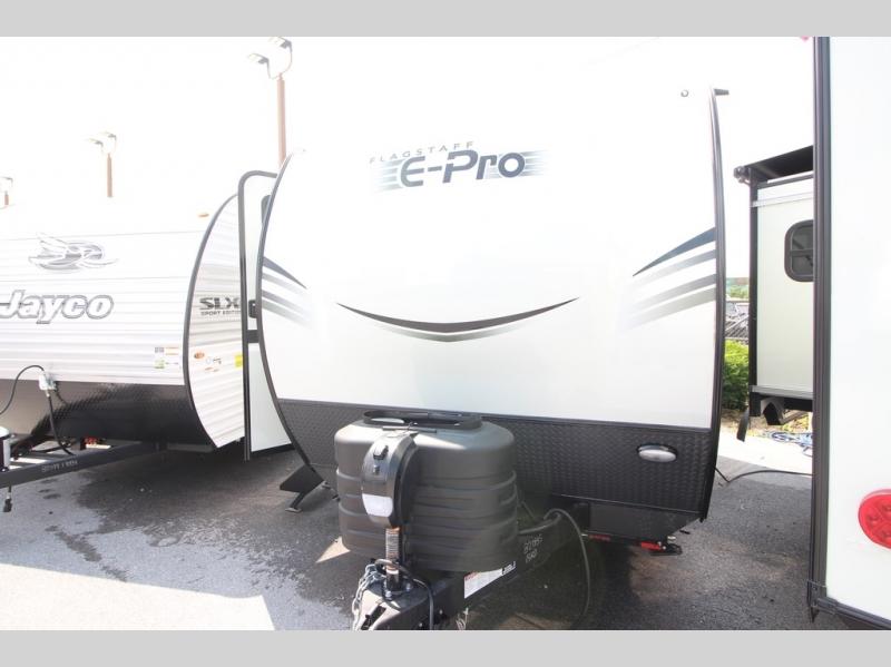 With any Flagstaff E-Pro travel trailer by Forest River, you will experience lightweight towing, style and features that will meet your needs, plus amenities that give you more than you expected! Built with interior and exterior composite sidewall construction, tongue and grove plywood flooring, and a vacuum laminated roof and walls, plus torsion axle, Rubber-Ryde suspension, and a tire pressure monitoring system for safety while traveling. And the 200 watt roof mount solar panel with 1,800-watt inverter will allow you to stay off-grid if you like. The interior offers a comfortable environment with the choice to use the air conditioner or furnace, and a 12V entertainment TV with a stereo to stay up to date on your favorite movies. Make your selection today!