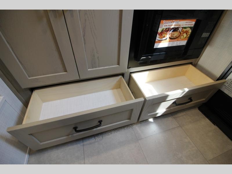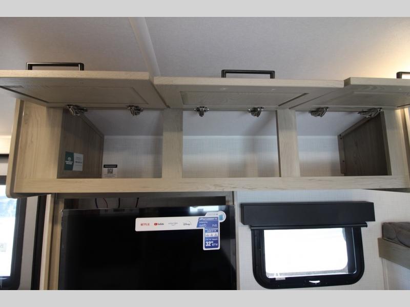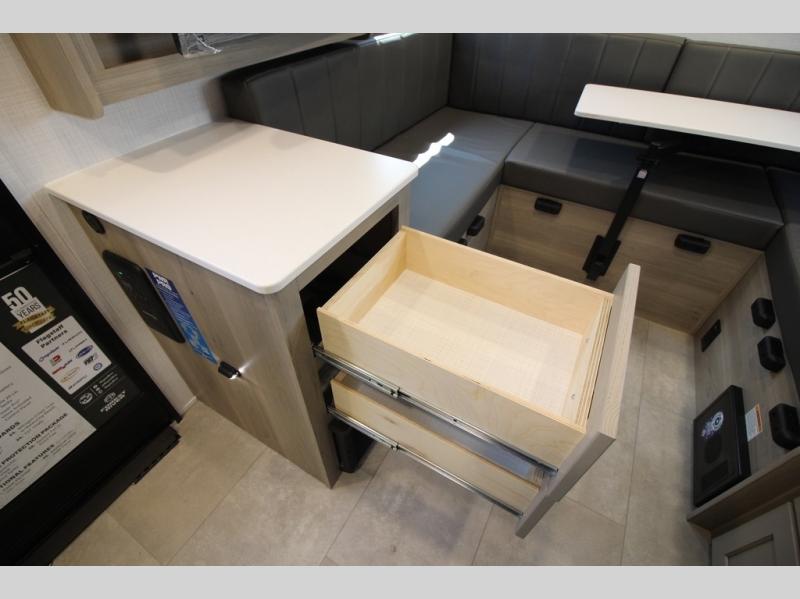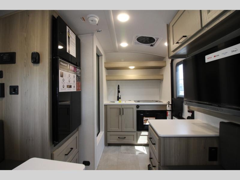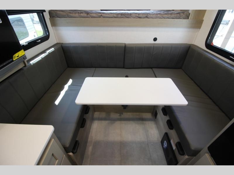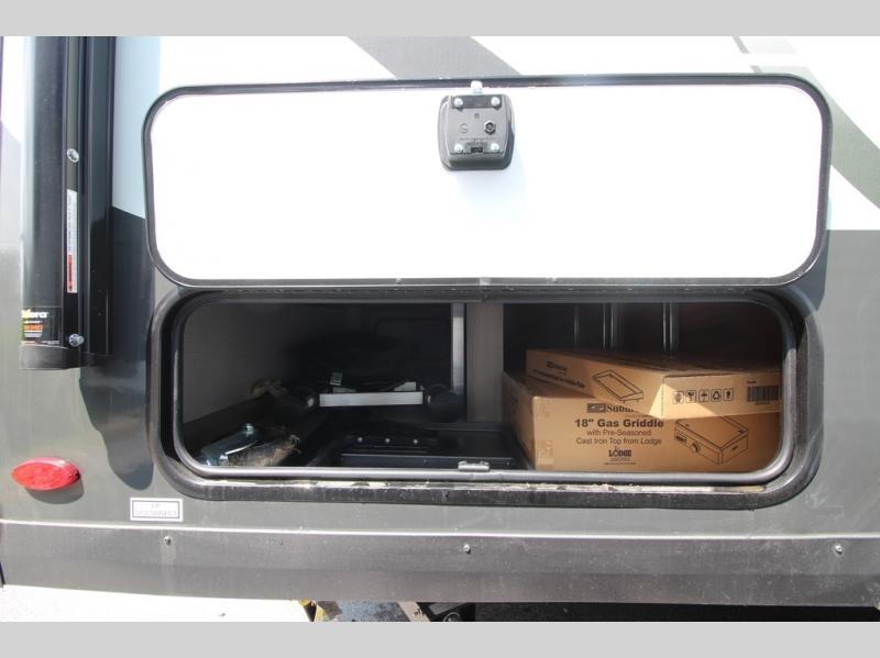 If you like to be on the go with your spouse or friend then this travel trailer is for you! The 26" x 74" bunk provides a comfortable place to sleep, as well as the 80" x 54" U-shaped dinette once converted. You even have a 32" TV nearby to watch your favorite movies. Freshen up in the wet bath each morning and warm up a cinnamon roll in the convection microwave or grab some eggs from the 12V refrigerator then fry them up on the recessed three burner cooktop. There is also an outside kitchen complete with a refrigerator and griddle, and the pass-thru storage will be perfect for fishing poles!