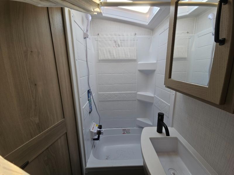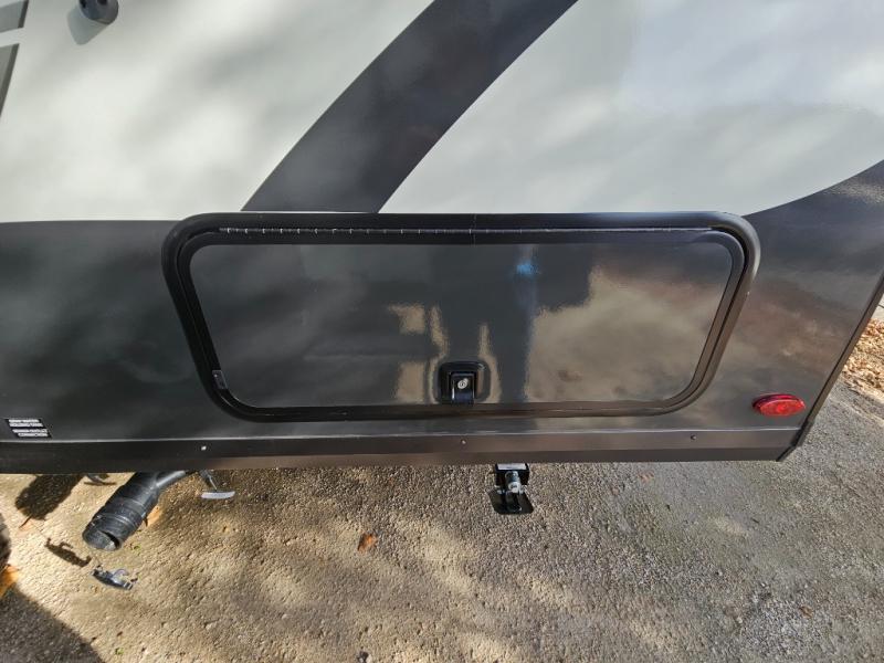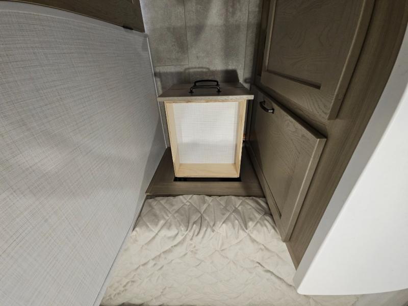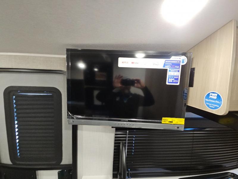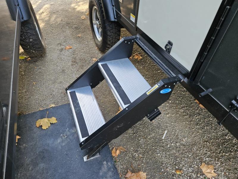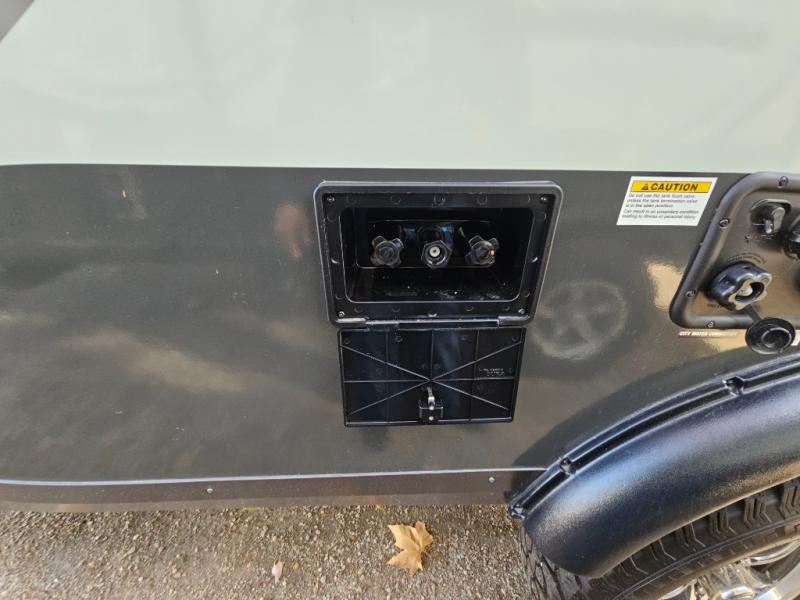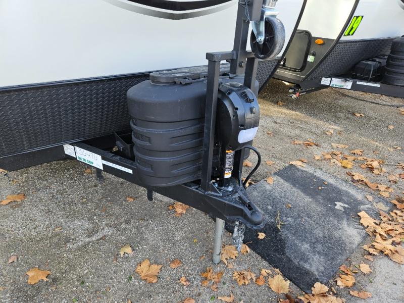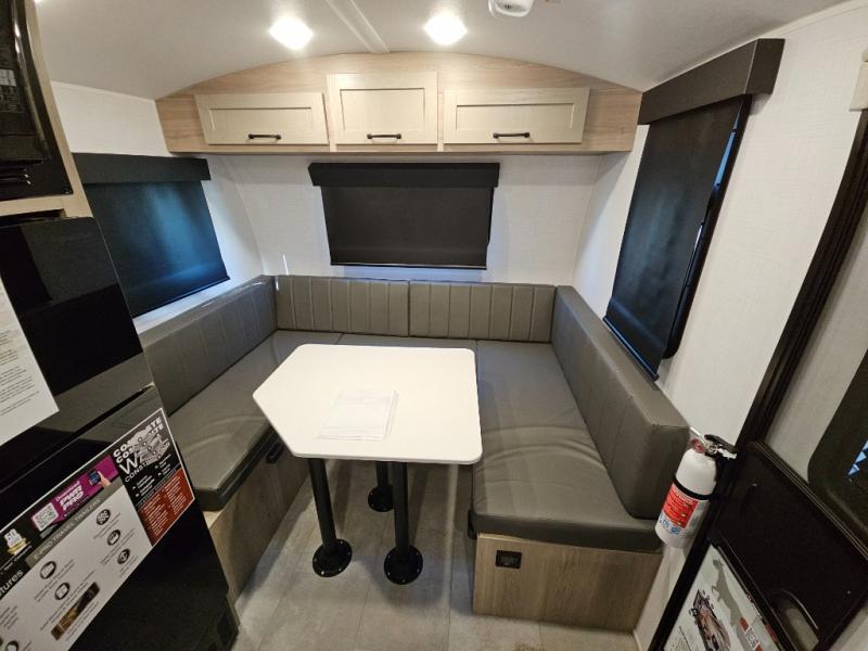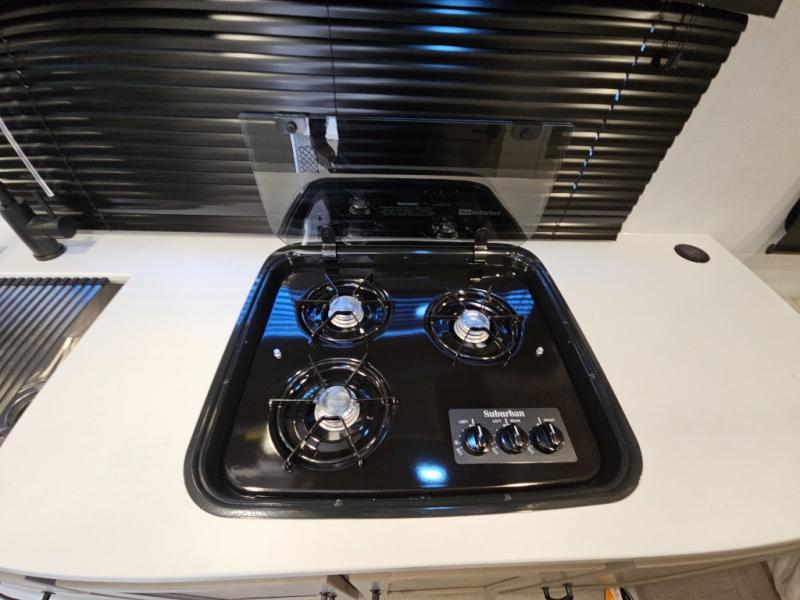 Your small family will enjoy camping in this travel trailer! The 26" x 80" flip-up bunk provides a comfortable place to sleep above the 54" x 74" full bed, as well as the front 54" x 81" U-shaped dinette once converted. You even have a 32" TV nearby to watch your favorite movies. Freshen up in the full bathroom each morning and warm up a cinnamon roll in the microwave or grab some eggs from the 12V refrigerator then fry them up on the recessed three burner cooktop. There is also an outside griddle underneath the 15' power awning, and the pass-thru storage will be perfect for fishing poles!