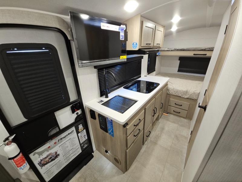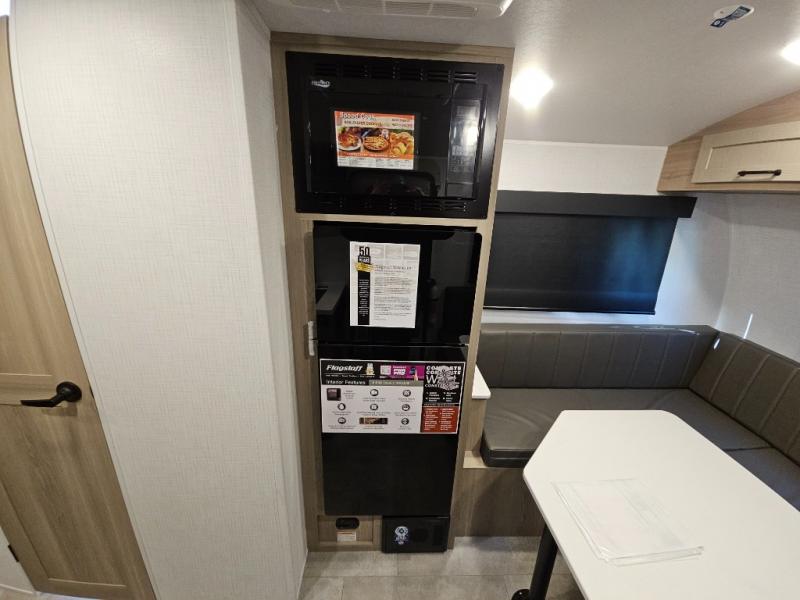 With any Flagstaff E-Pro travel trailer by Forest River, you will experience lightweight towing, style and features that will meet your needs, plus amenities that give you more than you expected! Built with interior and exterior composite sidewall construction, tongue and grove plywood flooring, and a vacuum laminated roof and walls, plus torsion axle, Rubber-Ryde suspension, and a tire pressure monitoring system for safety while traveling. And the 200 watt roof mount solar panel with 1,800-watt inverter will allow you to stay off-grid if you like. The interior offers a comfortable environment with the choice to use the air conditioner or furnace, and a 12V entertainment TV with a stereo to stay up to date on your favorite movies. Make your selection today!