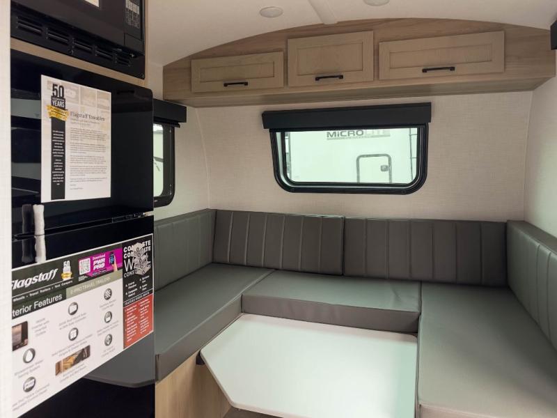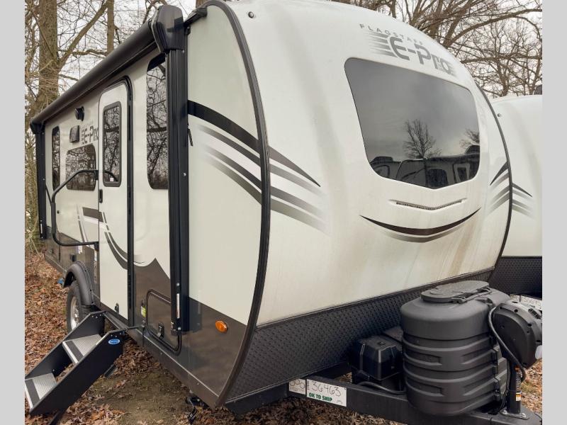 With any Flagstaff E-Pro travel trailer by Forest River, you will experience lightweight towing, style and features that will meet your needs, plus amenities that give you more than you expected! Built with interior and exterior composite sidewall construction, tongue and grove plywood flooring, and a vacuum laminated roof and walls, plus torsion axle, Rubber-Ryde suspension, and a tire pressure monitoring system for safety while traveling. And the 200 watt roof mount solar panel with 1,800-watt inverter will allow you to stay off-grid if you like. The interior offers a comfortable environment with the choice to use the air conditioner or furnace, and a 12V entertainment TV with a stereo to stay up to date on your favorite movies. Make your selection today!