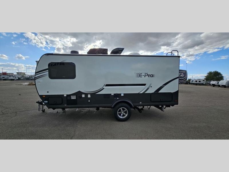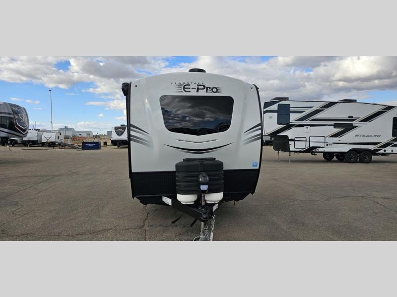 With any Flagstaff E-Pro travel trailer by Forest River, you will experience lightweight towing, style and features that will meet your needs, plus amenities that give you more than you expected! Built with interior and exterior composite sidewall construction, tongue and grove plywood flooring, and a vacuum laminated roof and walls, plus torsion axle, Rubber-Ryde suspension, and a tire pressure monitoring system for safety while traveling. And the 200 watt roof mount solar panel with 1,800-watt inverter will allow you to stay off-grid if you like. The interior offers a comfortable environment with the choice to use the air conditioner or furnace, and a 12V entertainment TV with a stereo to stay up to date on your favorite movies. Make your selection today!