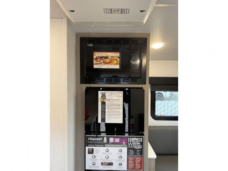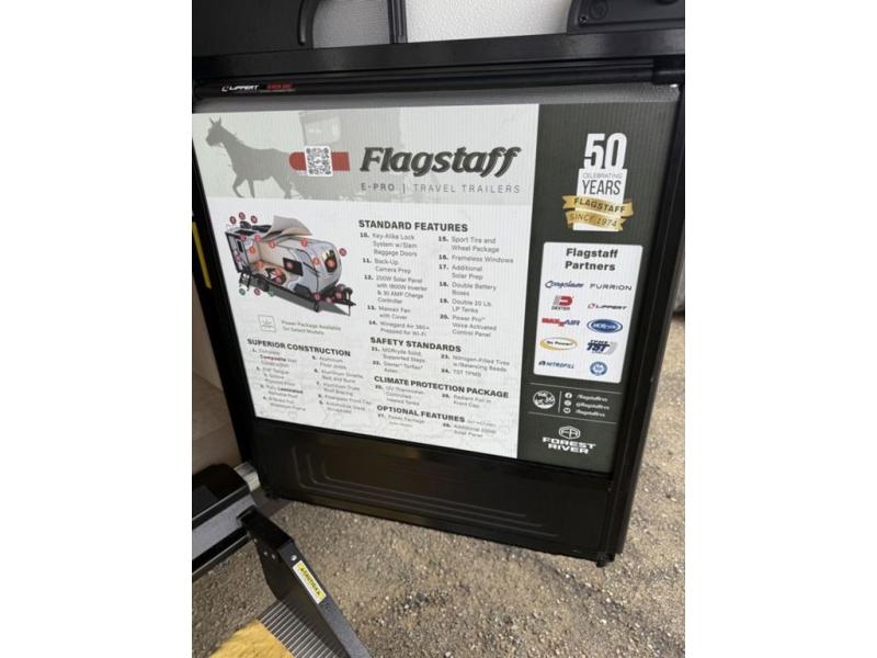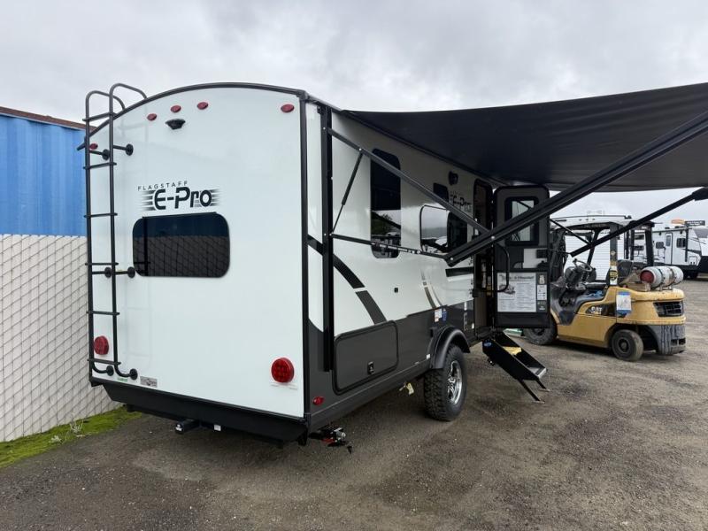 With any Flagstaff E-Pro travel trailer by Forest River, you will experience lightweight towing, style and features that will meet your needs, plus amenities that give you more than you expected! Built with interior and exterior composite sidewall construction, tongue and grove plywood flooring, and a vacuum laminated roof and walls, plus torsion axle, Rubber-Ryde suspension, and a tire pressure monitoring system for safety while traveling. And the 200 watt roof mount solar panel with 1,800-watt inverter will allow you to stay off-grid if you like. The interior offers a comfortable environment with the choice to use the air conditioner or furnace, and a 12V entertainment TV with a stereo to stay up to date on your favorite movies. Make your selection today!