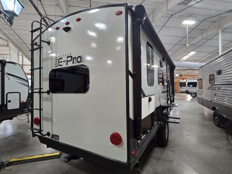 With any Flagstaff E-Pro travel trailer by Forest River, you will experience lightweight towing, style and features that will meet your needs, plus amenities that give you more than you expected! Built with interior and exterior composite sidewall construction, tongue and grove plywood flooring, and a vacuum laminated roof and walls, plus torsion axle, Rubber-Ryde suspension, and a tire pressure monitoring system for safety while traveling. And the 200 watt roof mount solar panel with 1,800-watt inverter will allow you to stay off-grid if you like. The interior offers a comfortable environment with the choice to use the air conditioner or furnace, and a 12V entertainment TV with a stereo to stay up to date on your favorite movies. Make your selection today!
