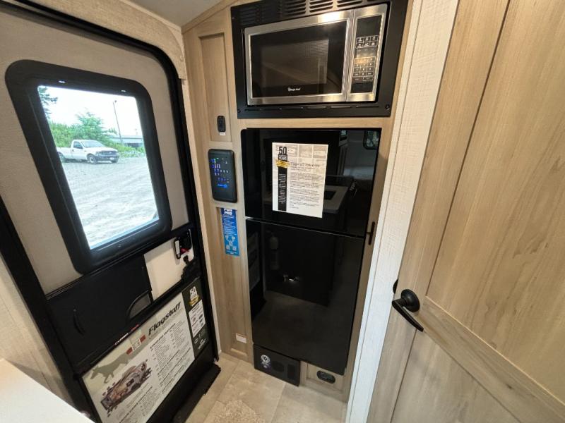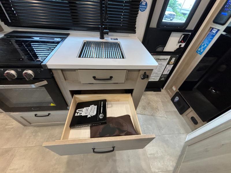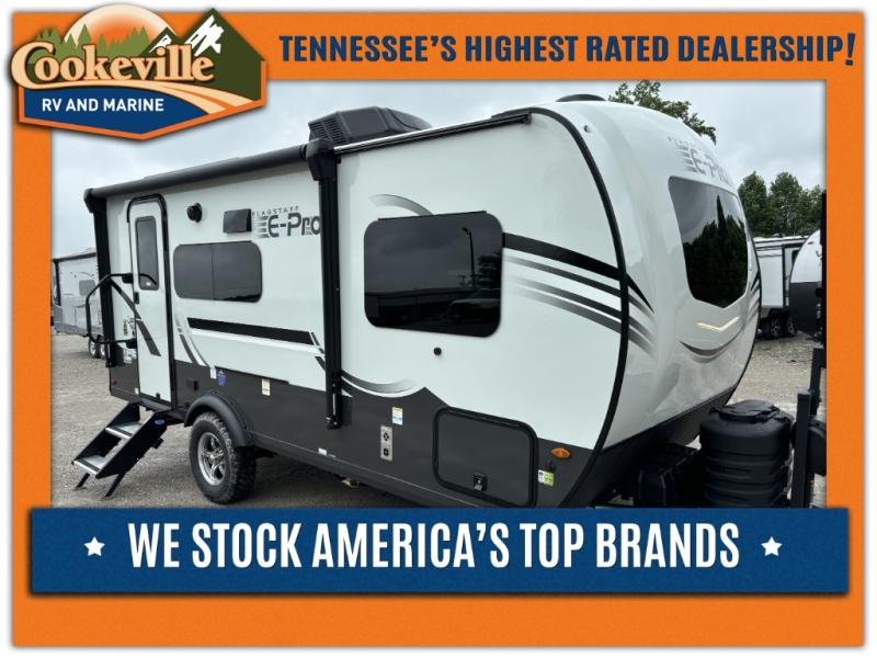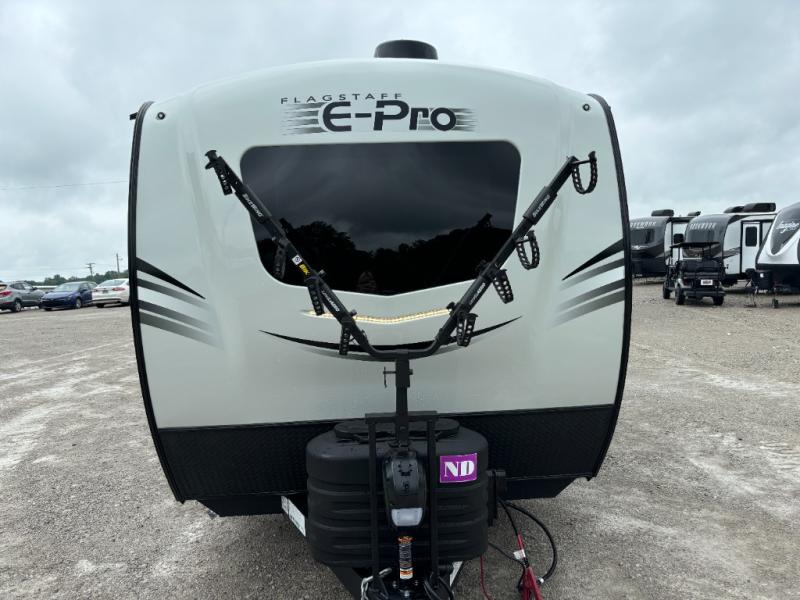 With any Flagstaff E-Pro travel trailer by Forest River, you will experience lightweight towing, style and features that will meet your needs, plus amenities that give you more than you expected! Built with interior and exterior composite sidewall construction, tongue and grove plywood flooring, and a vacuum laminated roof and walls, plus torsion axle, Rubber-Ryde suspension, and a tire pressure monitoring system for safety while traveling. And the 200 watt roof mount solar panel with 1,800-watt inverter will allow you to stay off-grid if you like. The interior offers a comfortable environment with the choice to use the air conditioner or furnace, and a 12V entertainment TV with stereo to stay up to date on your favorite movies. Make your selection today!