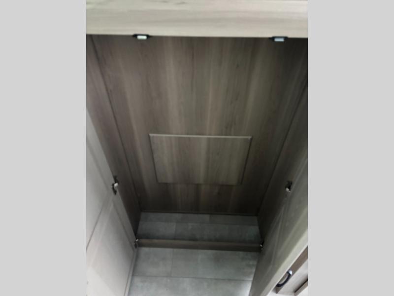 This can be the perfect couples trailer for you or your own RV with more floor space to move around thanks to the slide out sofa with a 30" x 15" table which offers sleeping space for friends. You will have a queen bed to lay your head up front, and everyone can watch the 32" TV. The wardrobe and overhead cabinets give you clothing storage, and the kitchen cooktop and microwave allow the cook to make warm meals. And the 12V refrigerator is conveniently next to the entry so you can grab a drink on your way out to relax under the 11' power awning.