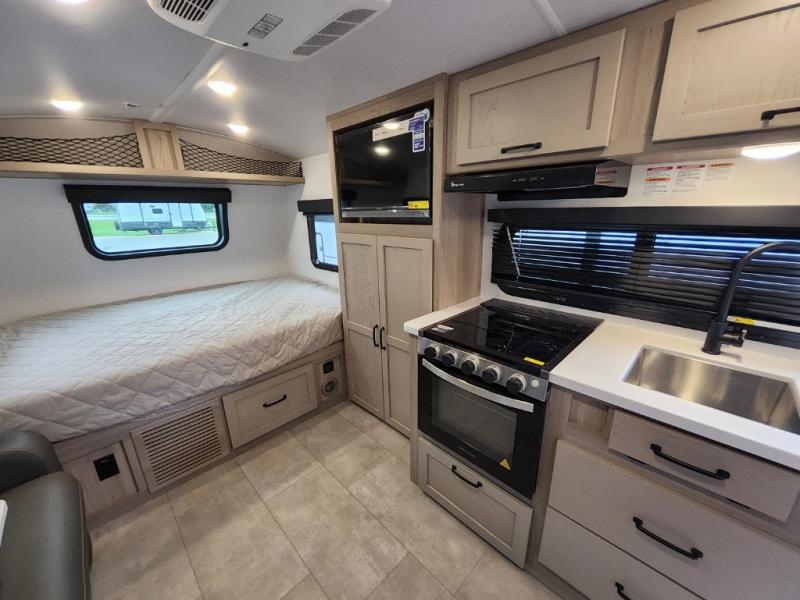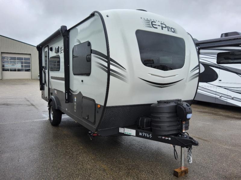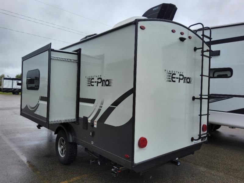With any Flagstaff E-Pro travel trailer by Forest River, you will experience lightweight towing, style and features that will meet your needs, plus amenities that give you more than you expected! Built with interior and exterior composite sidewall construction, tongue and grove plywood flooring, and a vacuum laminated roof and walls, plus torsion axle, Rubber-Ryde suspension, and a tire pressure monitoring system for safety while traveling. And the 200 watt roof mount solar panel with 1,800-watt inverter will allow you to stay off-grid if you like. The interior offers a comfortable environment with the choice to use the air conditioner or furnace, and a 12V entertainment TV with a stereo to stay up to date on your favorite movies. Make your selection today!