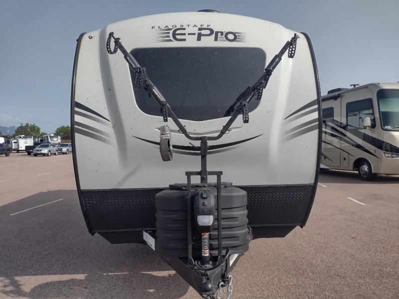 With any Flagstaff E-Pro travel trailer by Forest River, you will experience lightweight towing, style and features that will meet your needs, plus amenities that give you more than you expected! Built with interior and exterior composite sidewall construction, tongue and grove plywood flooring, and a vacuum laminated roof and walls, plus torsion axle, Rubber-Ryde suspension, and a tire pressure monitoring system for safety while traveling. And the 200 watt roof mount solar panel with 1,800-watt inverter will allow you to stay off-grid if you like. The interior offers a comfortable environment with the choice to use the air conditioner or furnace, and a 12V entertainment TV with a stereo to stay up to date on your favorite movies. Make your selection today!