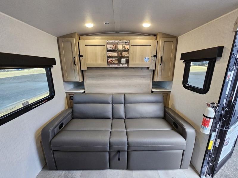 Whether you enjoy staying at the campground for a weekend or longer and/or you enjoy off-grid camping, this 20' 2" long trailer gives you lots of interior space and versatility to enjoy each and every trip. From the Murphy bed/sofa combo up front offering sleeping space and seating depending on which you prefer at the time, to the full rear bathroom which also offers overhead storage, you will have everything you need. And the kitchen cooktop, microwave and 12V refrigerator allow you to make meals and store leftovers. Two can dine at the booth dinette or you can eat outdoors under the 14' power awning.