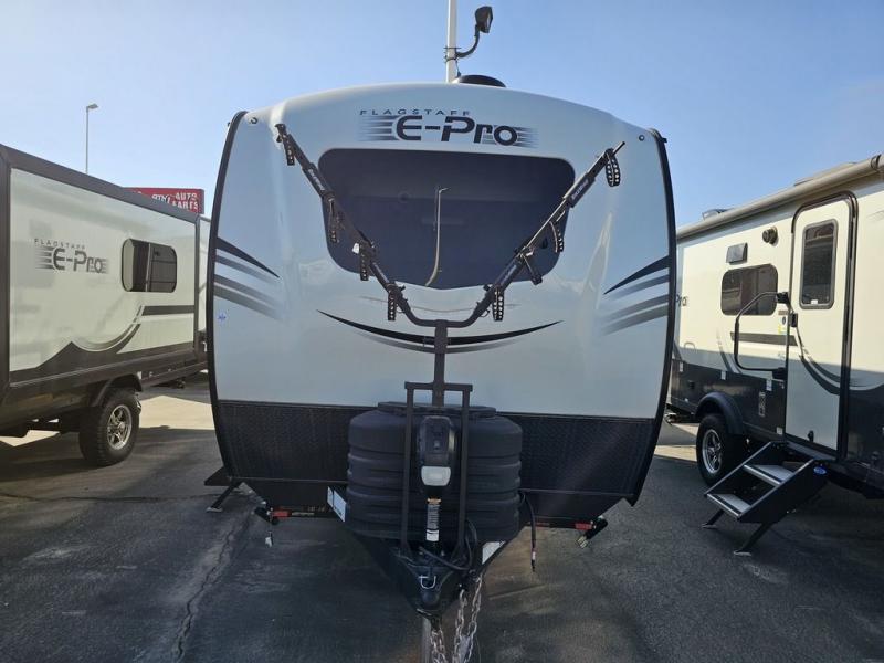With any Flagstaff E-Pro travel trailer by Forest River, you will experience lightweight towing, style and features that will meet your needs, plus amenities that give you more than you expected! Built with interior and exterior composite sidewall construction, tongue and grove plywood flooring, and a vacuum laminated roof and walls, plus torsion axle, Rubber-Ryde suspension, and a tire pressure monitoring system for safety while traveling. And the 200 watt roof mount solar panel with 1,800-watt inverter will allow you to stay off-grid if you like. The interior offers a comfortable environment with the choice to use the air conditioner or furnace, and a 12V entertainment TV with a stereo to stay up to date on your favorite movies. Make your selection today!