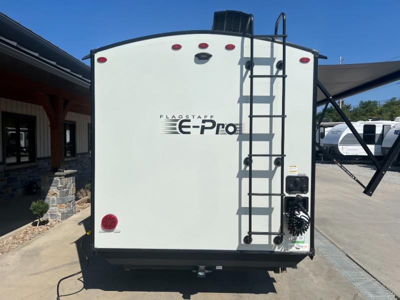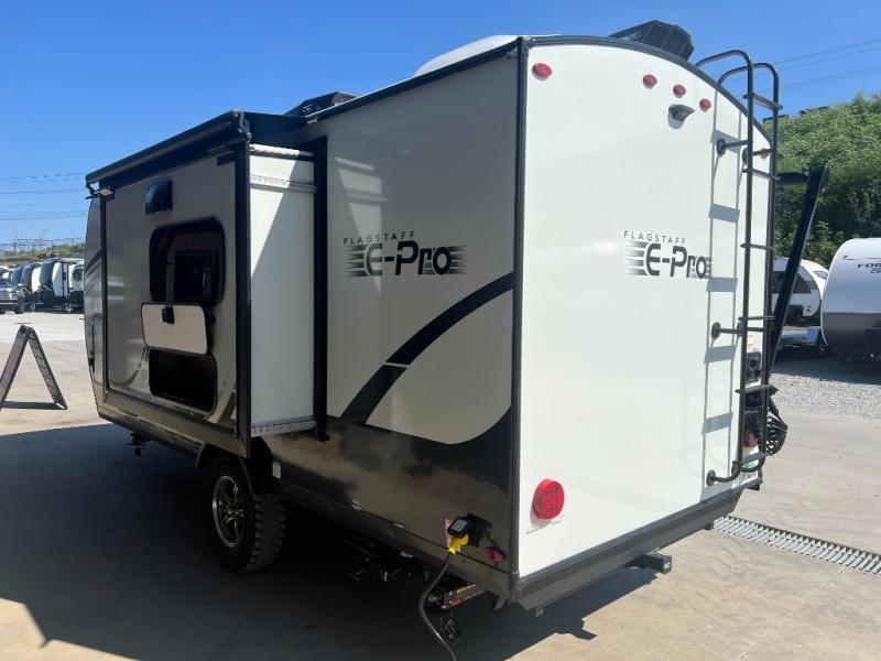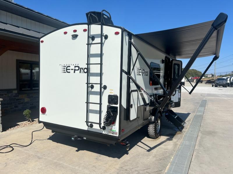 With any Flagstaff E-Pro travel trailer by Forest River, you will experience lightweight towing, style and features that will meet your needs, plus amenities that give you more than you expected! Built with interior and exterior composite sidewall construction, tongue and grove plywood flooring, and a vacuum laminated roof and walls, plus torsion axle, Rubber-Ryde suspension, and a tire pressure monitoring system for safety while traveling. And the 200 watt roof mount solar panel with 1,800-watt inverter will allow you to stay off-grid if you like. The interior offers a comfortable environment with the choice to use the air conditioner or furnace, and a 12V entertainment TV with a stereo to stay up to date on your favorite movies. Make your selection today!