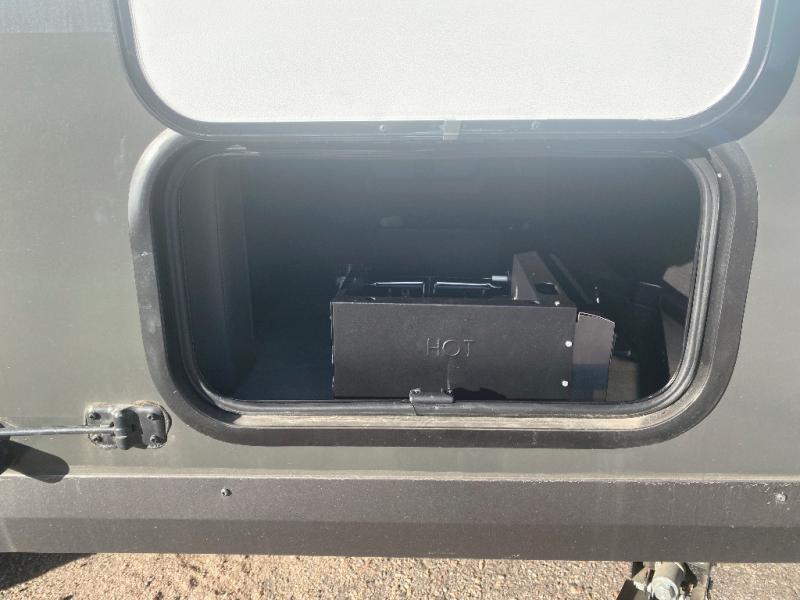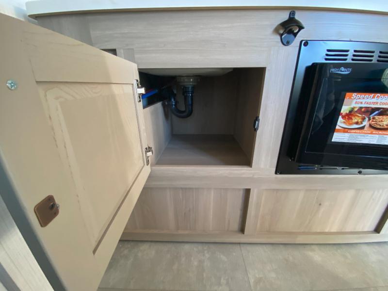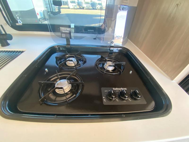 Camp with your favorite person in this trailer with the versatile Murphy bed/sofa combo up front giving you both a living area and a bedroom when you so choose. If you need sleeping space for one more, the dinette will provide that once easily setup. The large window gives you great views while dining or playing games. There is extra floor space in this trailer with the kitchen slide out that offers full amenities plus a sink to keep everything clean. And the full-length rear bathroom offers a spacious area to change your clothes in privacy and get cleaned up in the large shower.