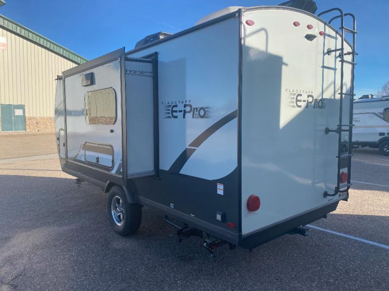 With any Flagstaff E-Pro travel trailer by Forest River, you will experience lightweight towing, style and features that will meet your needs, plus amenities that give you more than you expected! Built with interior and exterior composite sidewall construction, tongue and grove plywood flooring, and a vacuum laminated roof and walls, plus torsion axle, Rubber-Ryde suspension, and a tire pressure monitoring system for safety while traveling. And the 200 watt roof mount solar panel with 1,800-watt inverter will allow you to stay off-grid if you like. The interior offers a comfortable environment with the choice to use the air conditioner or furnace, and a 12V entertainment TV with a stereo to stay up to date on your favorite movies. Make your selection today!