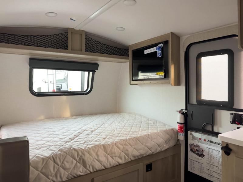 With any Flagstaff E-Pro travel trailer by Forest River, you will experience lightweight towing, style and features that will meet your needs, plus amenities that give you more than you expected! Built with interior and exterior composite sidewall construction, tongue and grove plywood flooring, and a vacuum laminated roof and walls, plus torsion axle, Rubber-Ryde suspension, and a tire pressure monitoring system for safety while traveling. And the 200 watt roof mount solar panel with 1,800-watt inverter will allow you to stay off-grid if you like. The interior offers a comfortable environment with the choice to use the air conditioner or furnace, and a 12V entertainment TV with stereo to stay up to date on your favorite movies. Make your selection today!