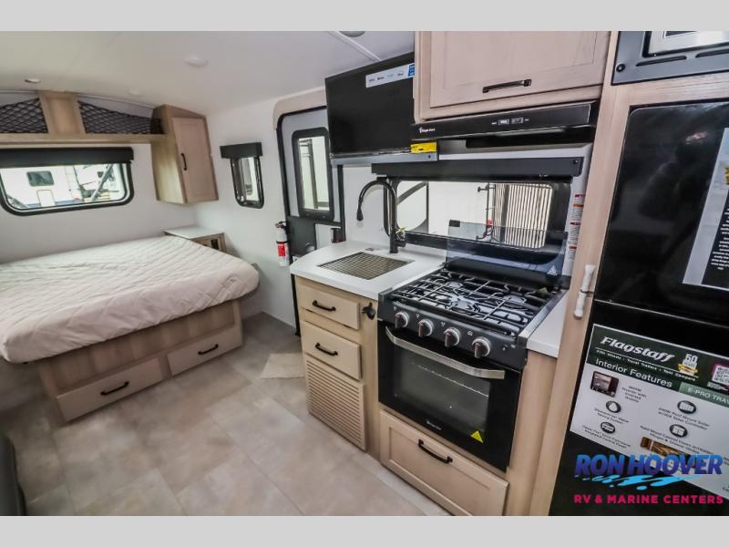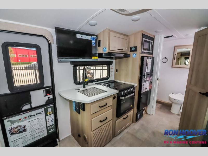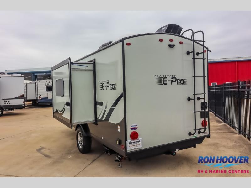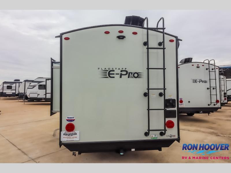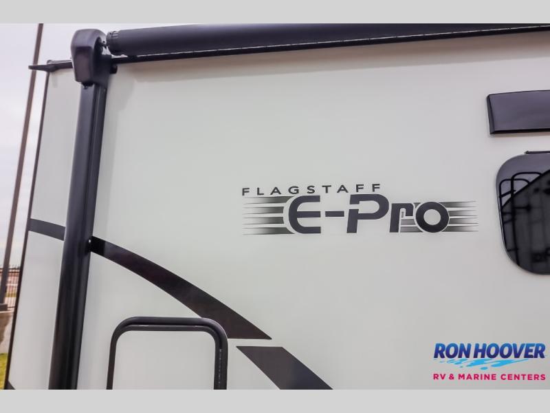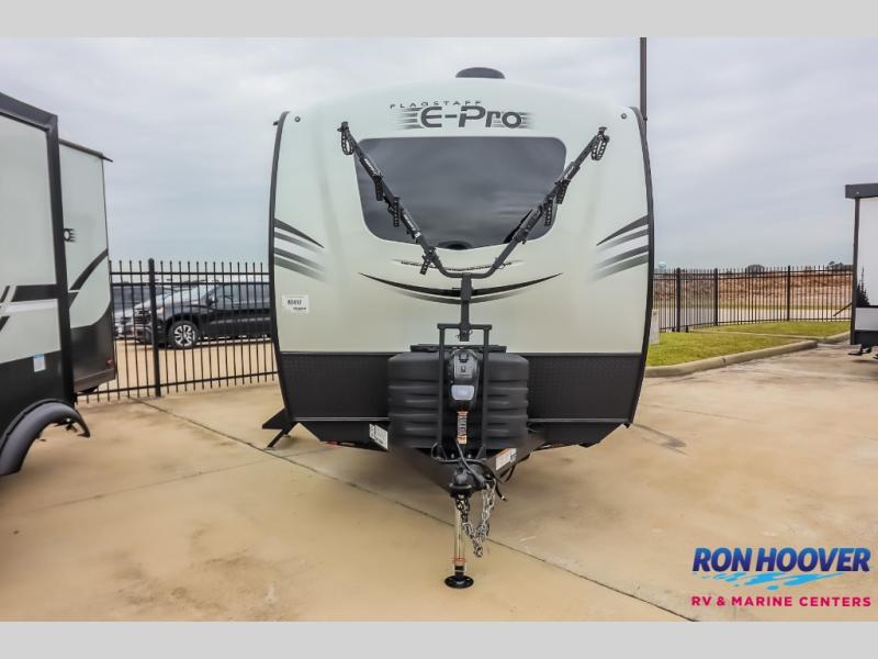 With any Flagstaff E-Pro travel trailer by Forest River, you will experience lightweight towing, style and features that will meet your needs, plus amenities that give you more than you expected! Built with interior and exterior composite sidewall construction, tongue and grove plywood flooring, and a vacuum laminated roof and walls, plus torsion axle, Rubber-Ryde suspension, and a tire pressure monitoring system for safety while traveling. And the 200 watt roof mount solar panel with 1,800-watt inverter will allow you to stay off-grid if you like. The interior offers a comfortable environment with the choice to use the air conditioner or furnace, and a 12V entertainment TV with a stereo to stay up to date on your favorite movies. Make your selection today!