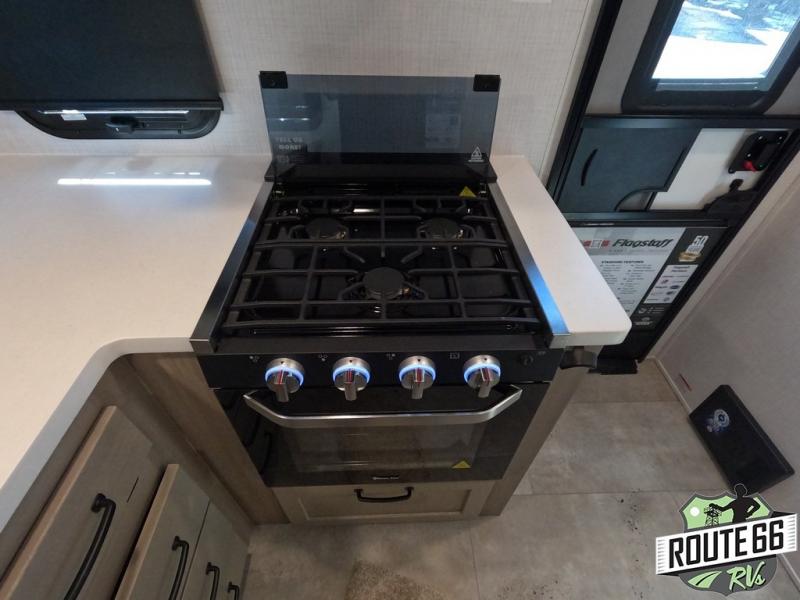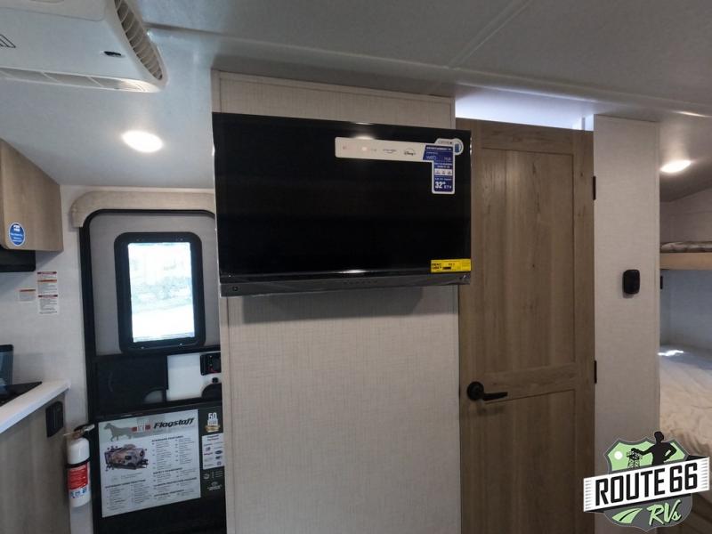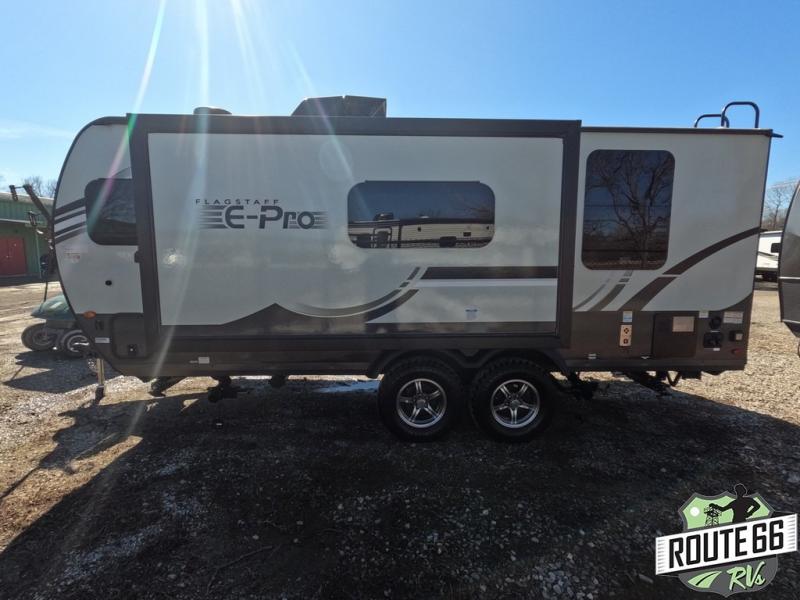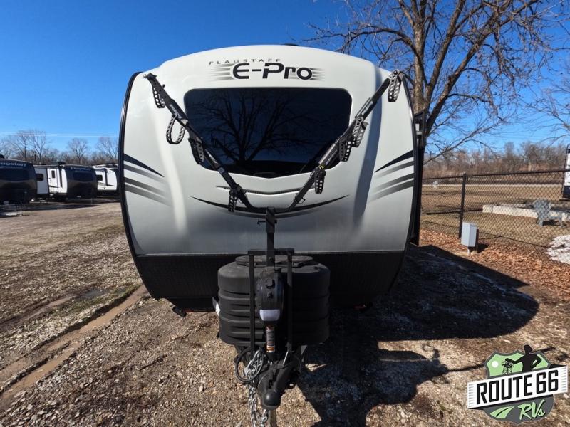 With any Flagstaff E-Pro travel trailer by Forest River, you will experience lightweight towing, style and features that will meet your needs, plus amenities that give you more than you expected! Built with interior and exterior composite sidewall construction, tongue and grove plywood flooring, and a vacuum laminated roof and walls, plus torsion axle, Rubber-Ryde suspension, and a tire pressure monitoring system for safety while traveling. And the 200 watt roof mount solar panel with 1,800-watt inverter will allow you to stay off-grid if you like. The interior offers a comfortable environment with the choice to use the air conditioner or furnace, and a 12V entertainment TV with a stereo to stay up to date on your favorite movies. Make your selection today!