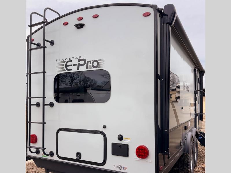 With any Flagstaff E-Pro travel trailer by Forest River, you will experience lightweight towing, style and features that will meet your needs, plus amenities that give you more than you expected! Built with interior and exterior composite sidewall construction, tongue and grove plywood flooring, and a vacuum laminated roof and walls, plus torsion axle, Rubber-Ryde suspension, and a tire pressure monitoring system for safety while traveling. And the 200 watt roof mount solar panel with 1,800-watt inverter will allow you to stay off-grid if you like. The interior offers a comfortable environment with the choice to use the air conditioner or furnace, and a 12V entertainment TV with a stereo to stay up to date on your favorite movies. Make your selection today!