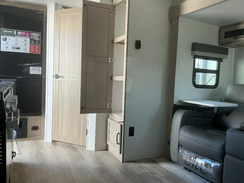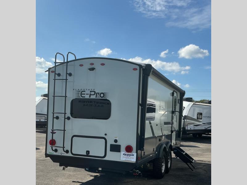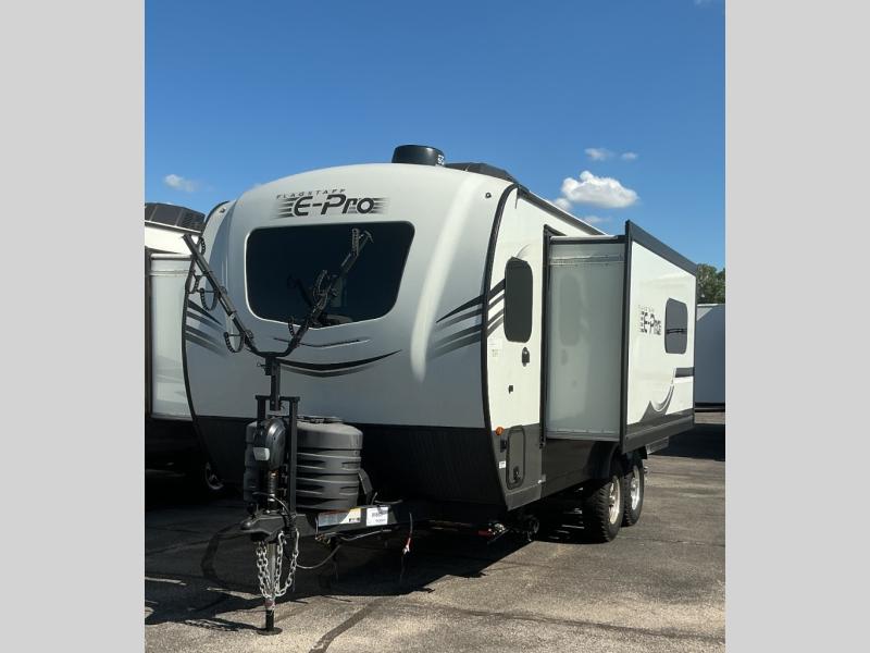 With any Flagstaff E-Pro travel trailer by Forest River, you will experience lightweight towing, style and features that will meet your needs, plus amenities that give you more than you expected! Built with interior and exterior composite sidewall construction, tongue and grove plywood flooring, and a vacuum laminated roof and walls, plus torsion axle, Rubber-Ryde suspension, and a tire pressure monitoring system for safety while traveling. And the 200 watt roof mount solar panel with 1,800-watt inverter will allow you to stay off-grid if you like. The interior offers a comfortable environment with the choice to use the air conditioner or furnace, and a 12V entertainment TV with a stereo to stay up to date on your favorite movies. Make your selection today!