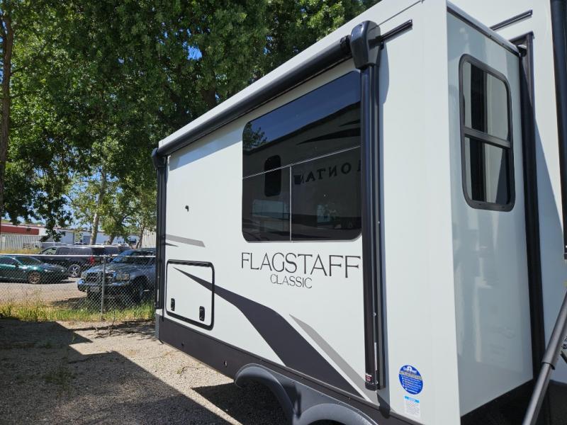 Each one of these Forest River Flagstaff Classic fifth wheels or travel trailers will be your home on wheels! Their quality craftsmanship and attention to detail shines through the enclosed underbelly, the radius roof with vaulted interior ceilings, and six-sided fully aluminum-framed floor, walls, and roof. Towing your unit will be easy with the Goodyear Endurance tires plus a tire pressure monitoring system with a monitor. The interior of each Flagstaff Classic model will have you feeling right at home with Sedonwood cabinetry, soft closing drawer slides, reading lights in the bedroom, plus many more comforts.