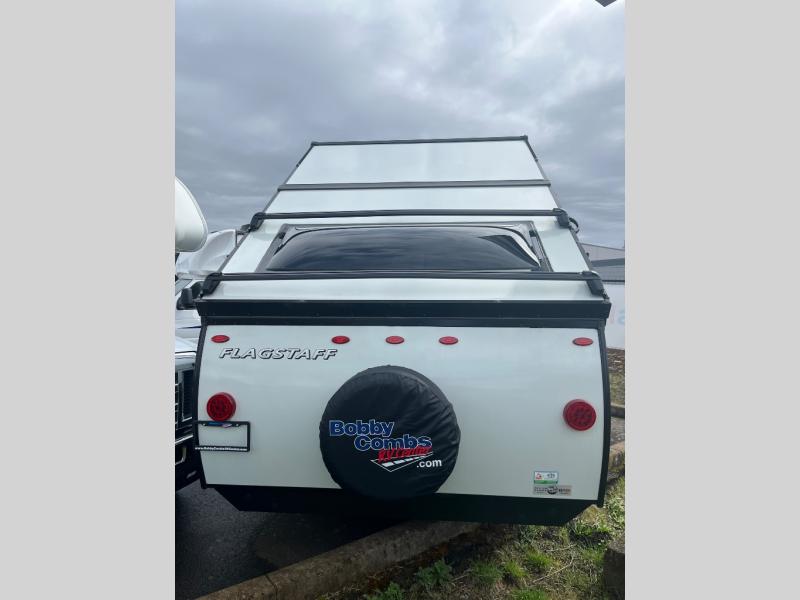The Forest River Flagstaff Hard Side High Wall A-frame is special because it allows you to adventure into the unknown with the advantages of a tent camper protected by the solid exterior found on a travel trailer. Some of the helpful features that make camping easy are the 11K BTU under bunk A/C to keep you cool during the hot camping months, the ProRac permanent crossbars which can hold up to 150 pounds, the 12V water pump, and the Hot Water Package with an outside spray port. You will also appreciate the large folding entry door grab handle, automatic gas regulator, solar prep on the frame, and more convenient features. The interior includes Sedona wood, wood drawers with full extension metal guides, LED ceiling lights, and more comforts that will make your space feel more like home. Each model is also prepped for a Wi-Fi booster with LTE to add some modern convenience.