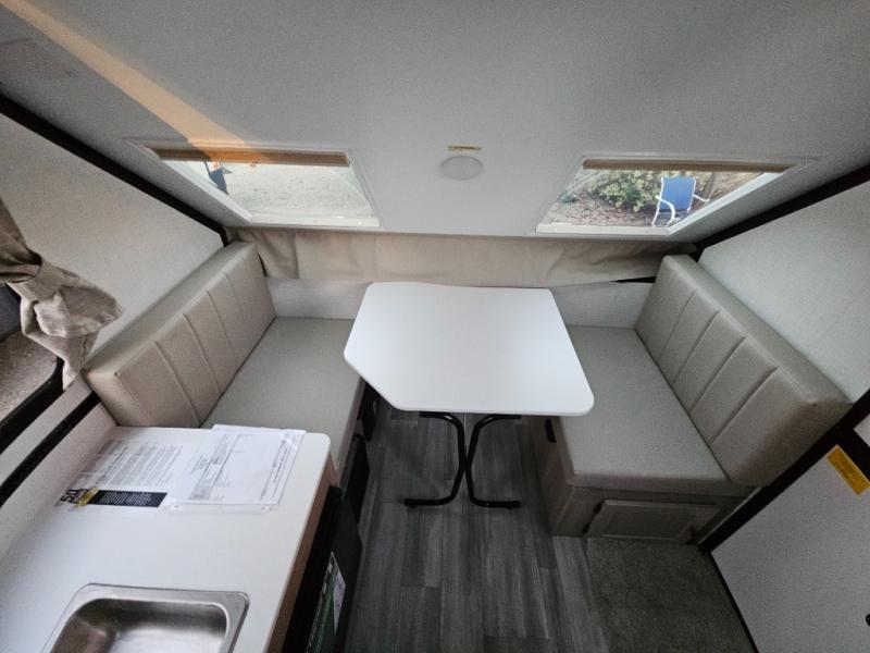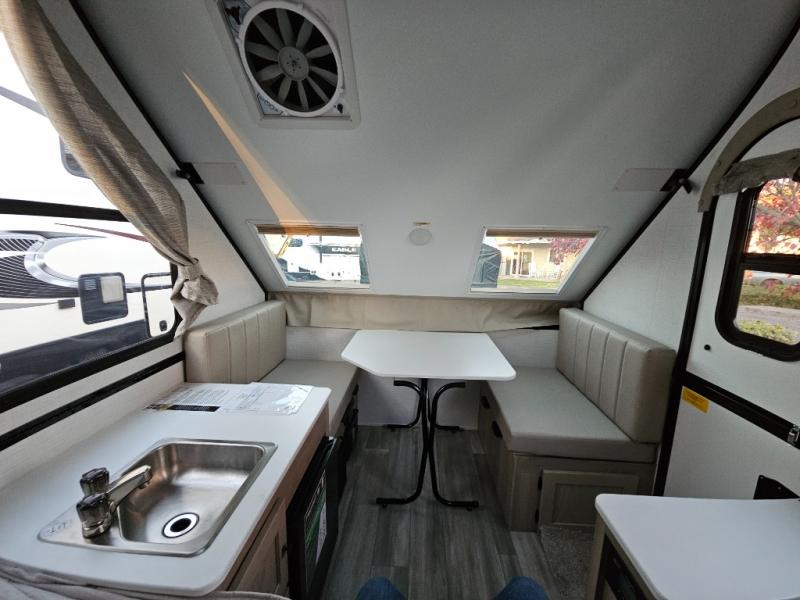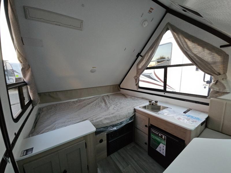 With any Flagstaff Hard Side A-frame camper by Forest River, you will enjoy the hassle-free towing of a tent camper and the exterior of a travel trailer. Like with all Forest River products, you will appreciate the durable construction, allowing you to make camping memories for years to come. There are comfortable seating and sleeping spaces, kitchen amenities to whip up your best meals, plus plenty of storage for your personal belongings, camp gear, and more!